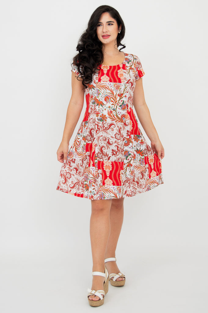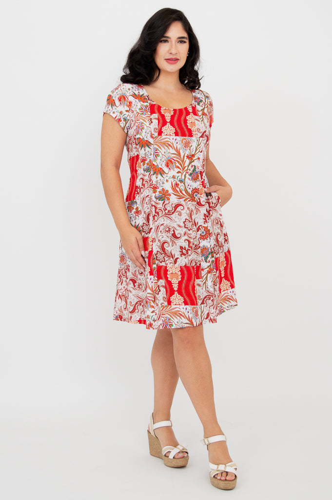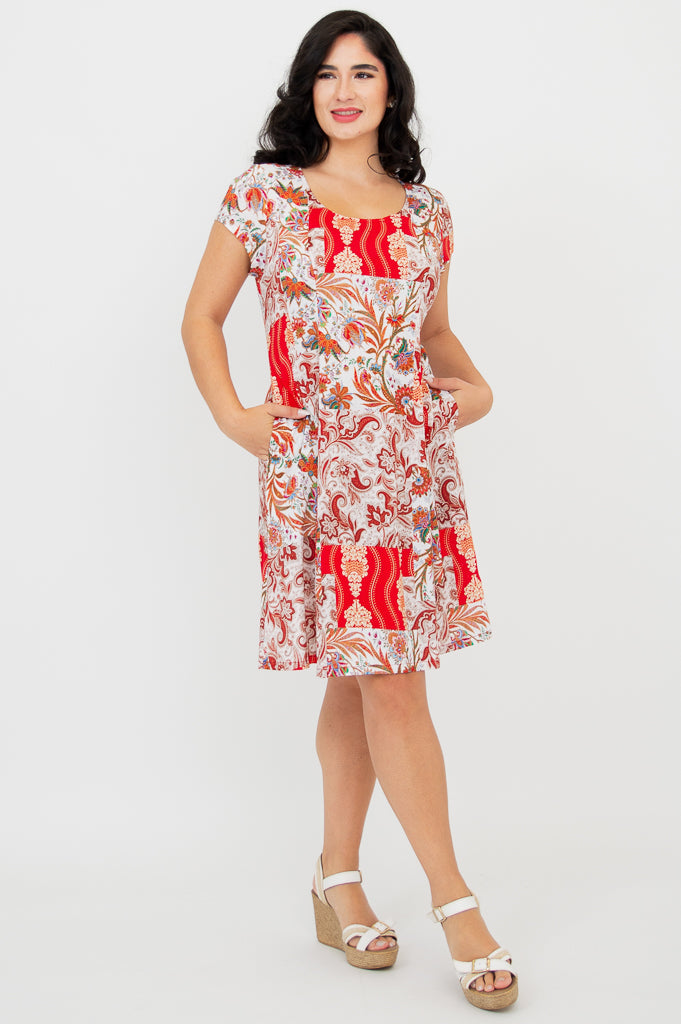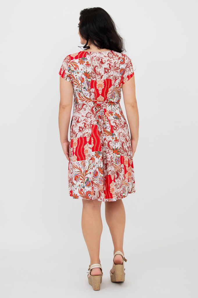 The Anna dress features simple styling from the front with short sleeves and a scoop-neck. From the back the adjustable corseted tie adds function and flair.