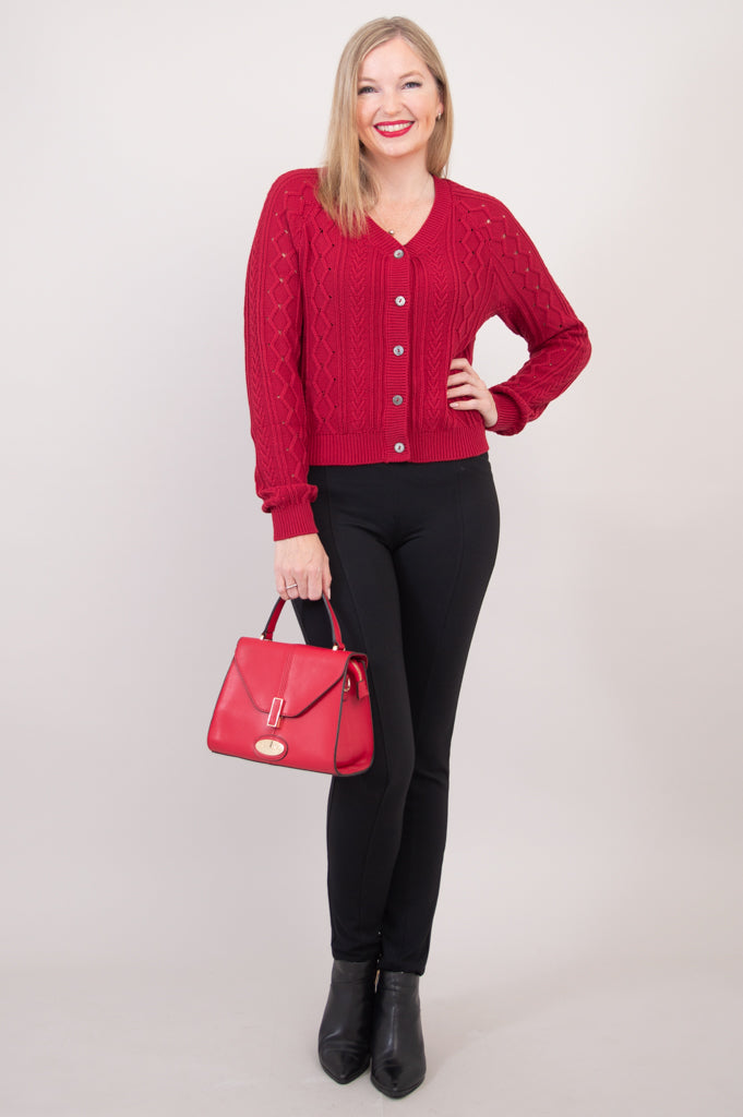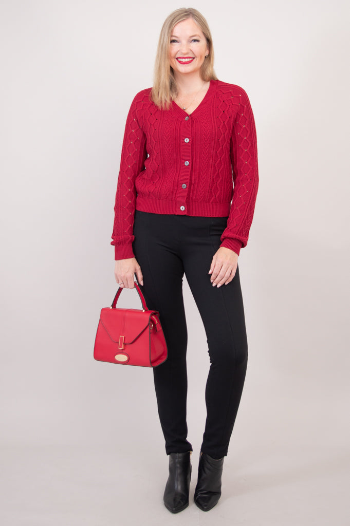 Bena Cardigan, Red, Cotton