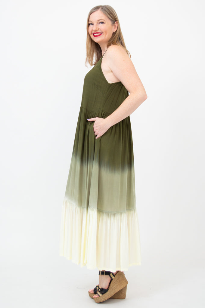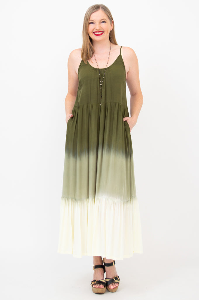 This lightweight, tiered maxi dress will be your go to for warm days and tropical vacations. The soft and light fabric is perfect for keeping you cool on those humid days. Adjustable straps, scoop neckline and pockets complete the look.