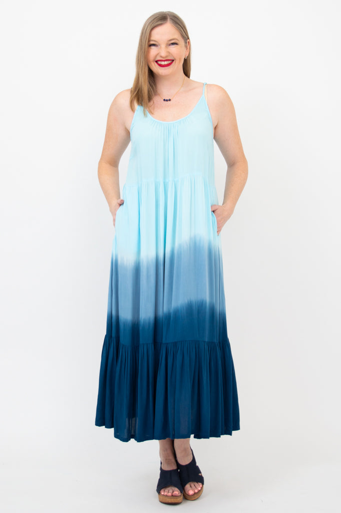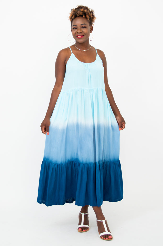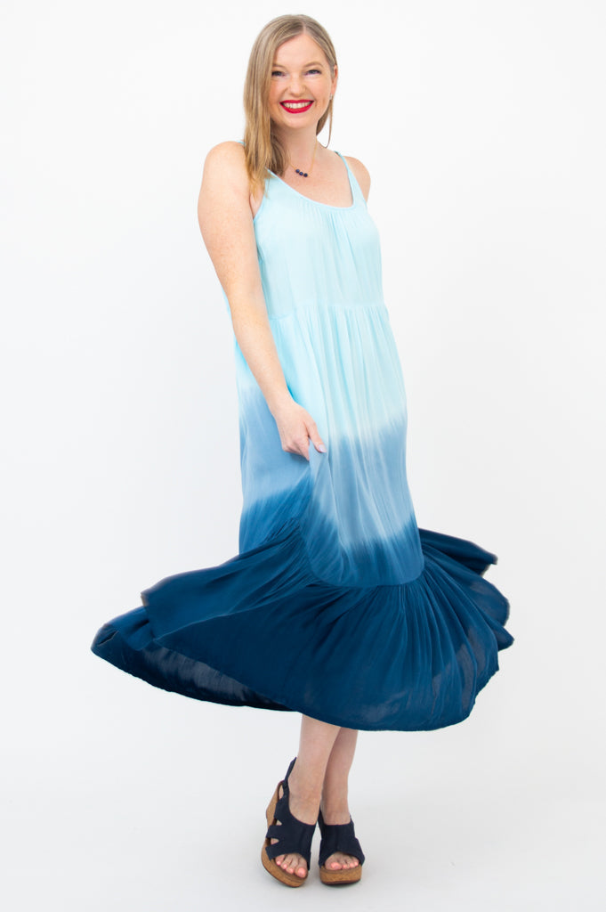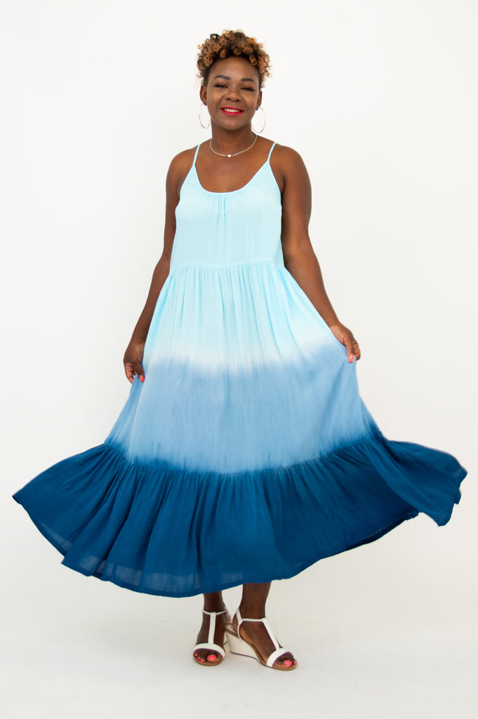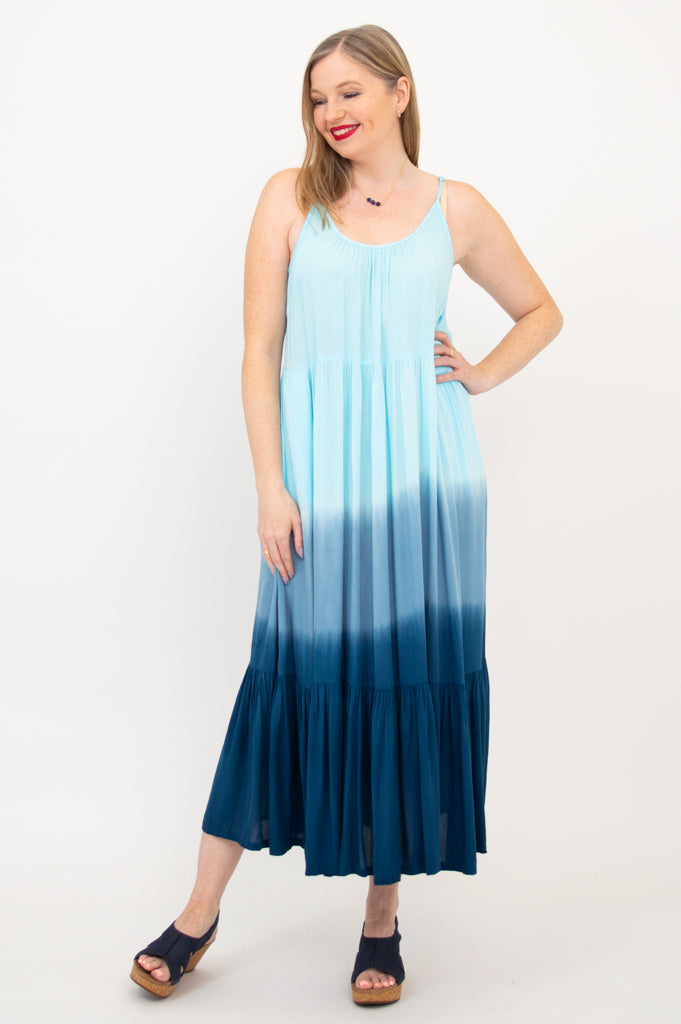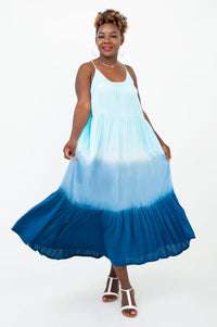 This lightweight, tiered maxi dress will be your go to for warm days and tropical vacations. The soft and light fabric is perfect for keeping you cool on those humid days. Adjustable straps, scoop neckline and pockets complete the look.