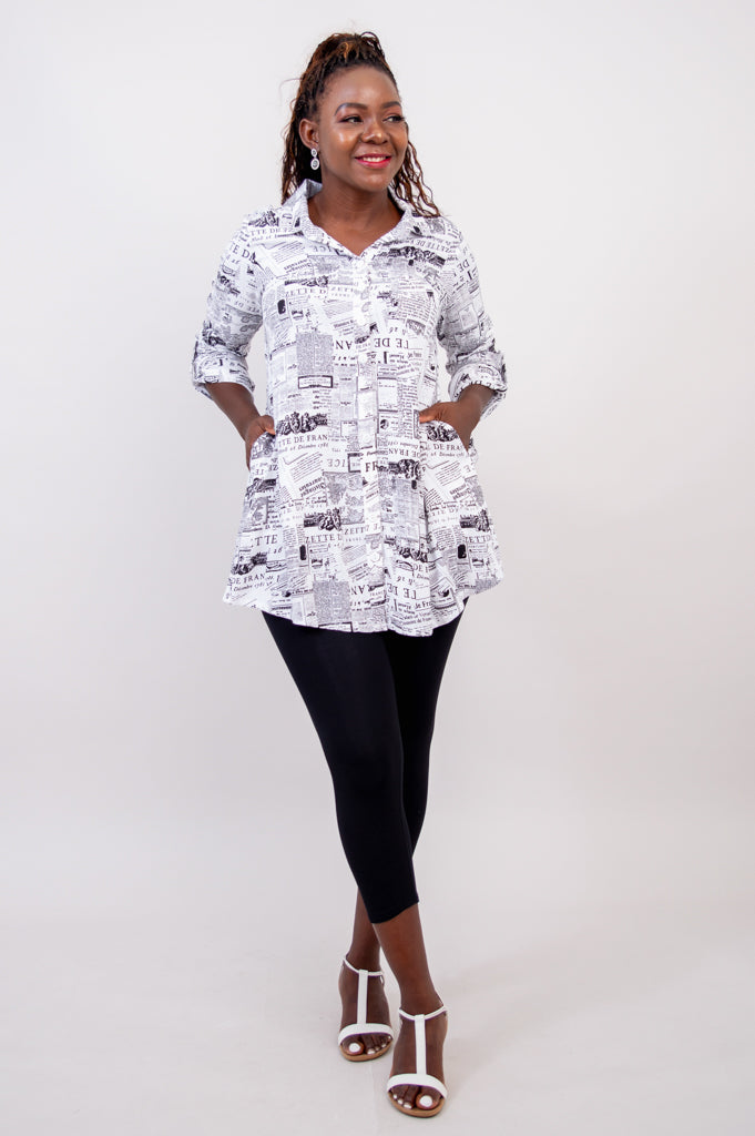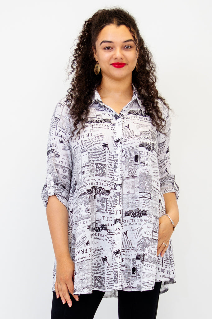 Celine Blouse, French News, Linen Bamboo- Final Sale