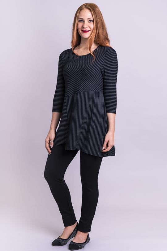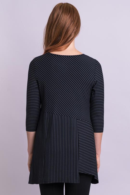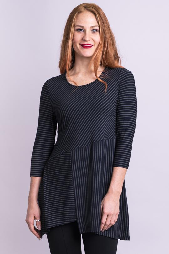 Charming Tunic, Blk/Grey Stripe, Bamboo- Final Sale