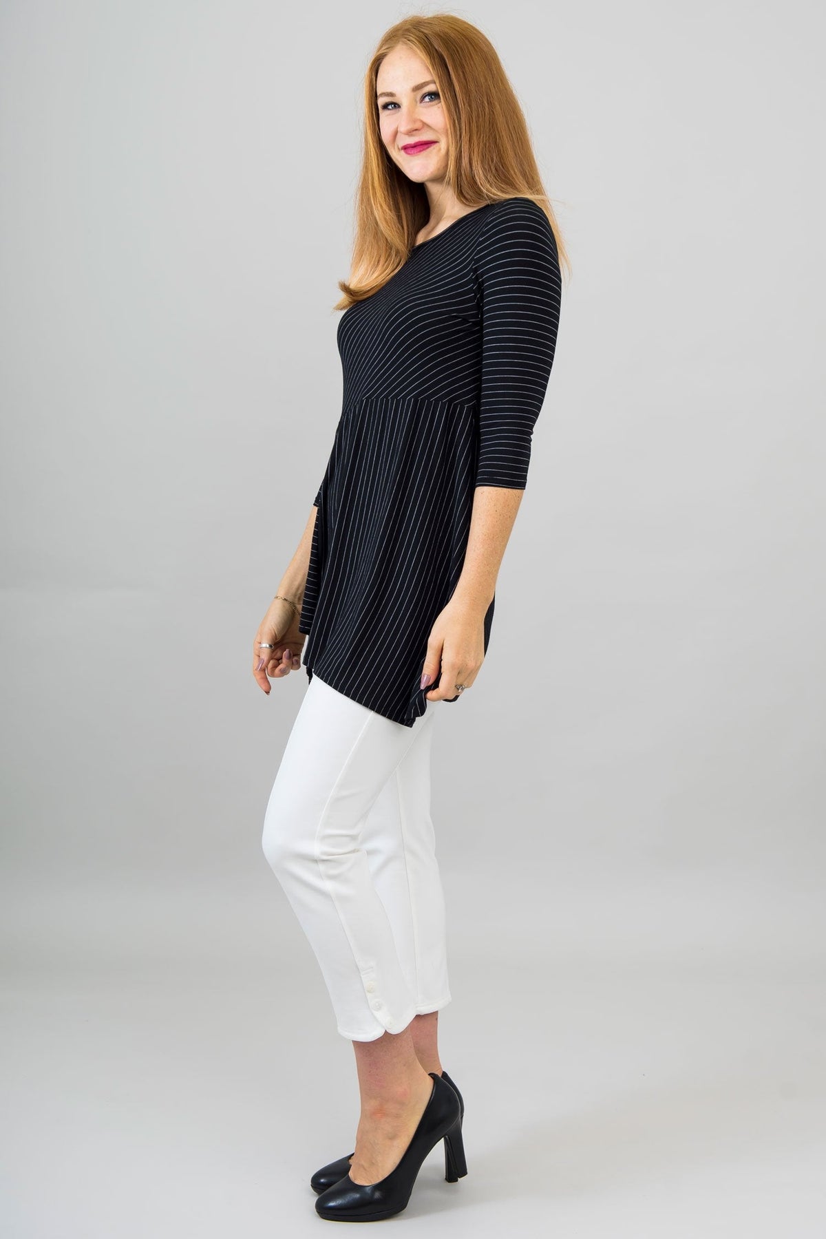Charming Tunic, BW Pin Stripe, Bamboo- Final Sale