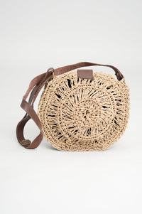 Brown Leather Handle Circle Rattan Purse, Small
