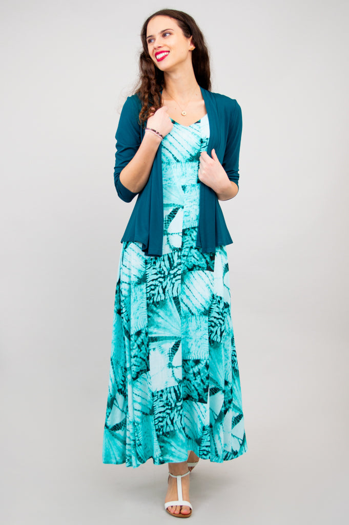Coraline is a maxi dress with a fitted empire bust and long flowing skirt. The back of the bodice is shirred for a perfect fit and enhances all figures. The straps are ample for concealing your bra.  This dress also features a detachable belt and pockets.