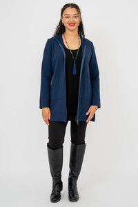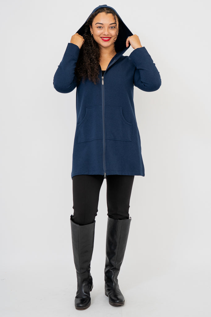 Introducing the Cortes Jacket, the perfect blend between cardigan and zip-up hoodie. This jacket is perfect to throw on top any outfit. Designed with a longer length, generous hood, fleece lined, and two front utility pockets.