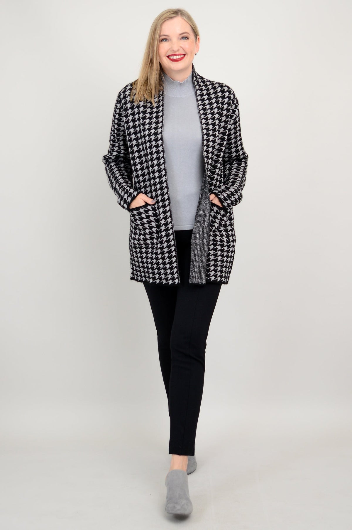 Dakota Cardigan, Houndstooth, Cotton Wool- Final Sale