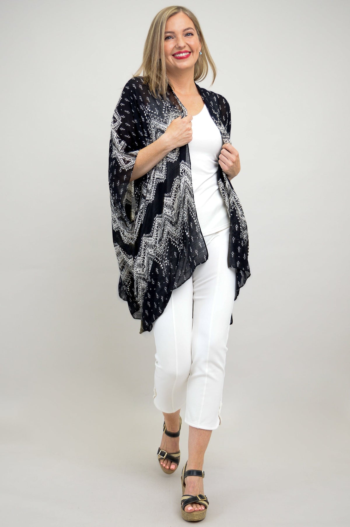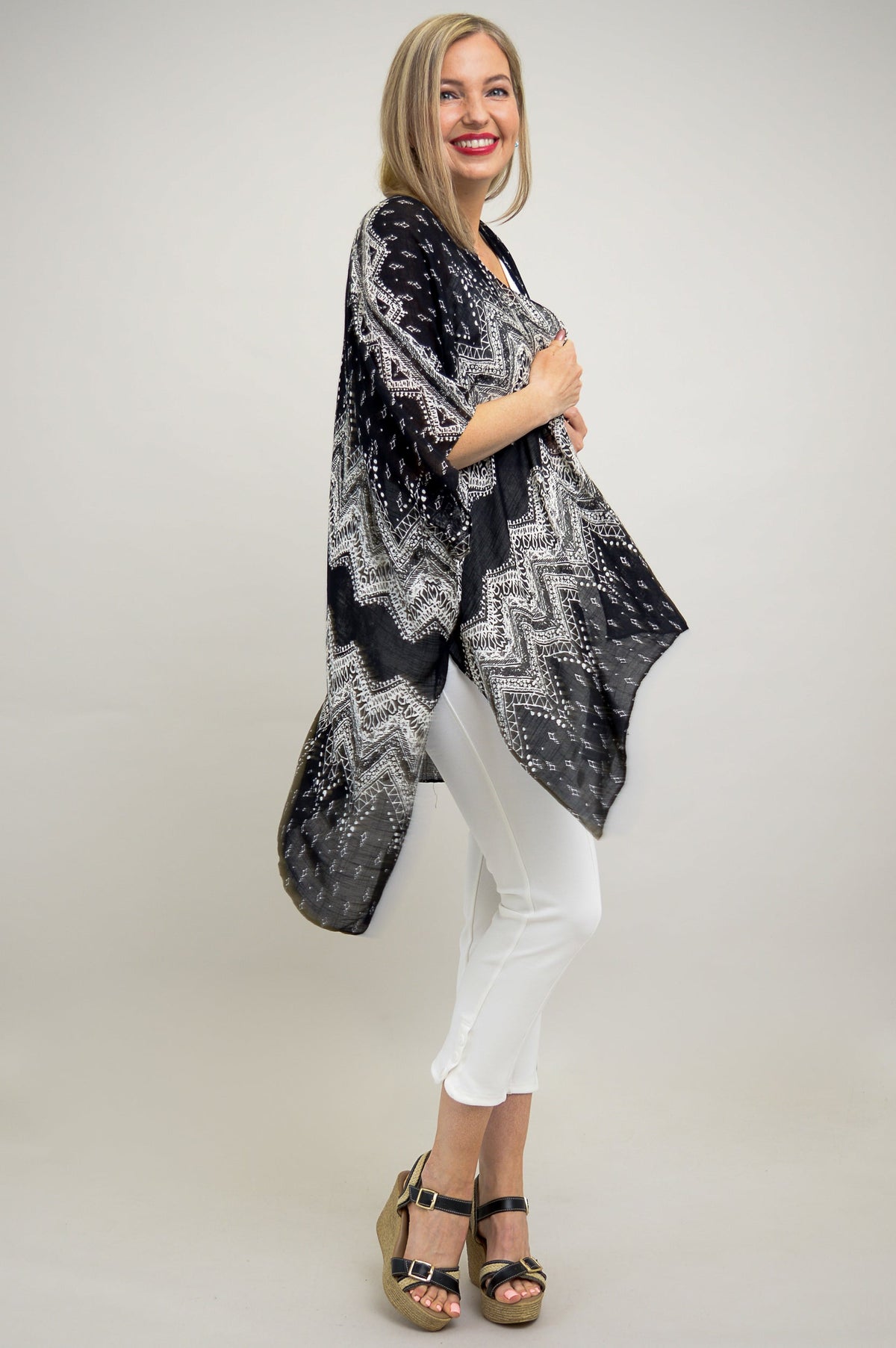 Casually elegant evening wrap, beach cover-up, or lounge wear.