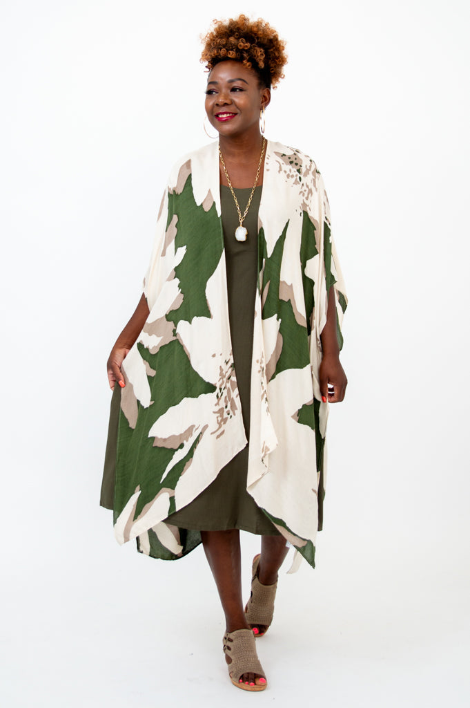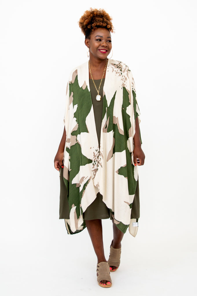Casually elegant evening wrap, beach cover-up, or lounge wear.