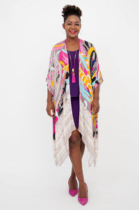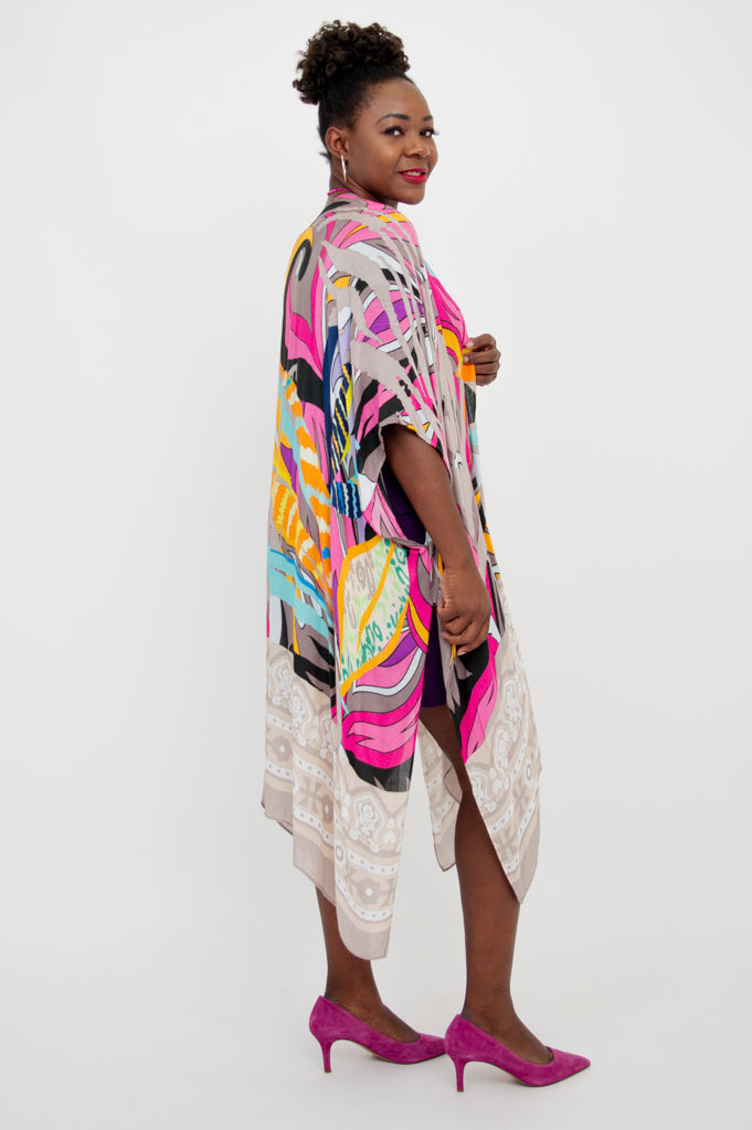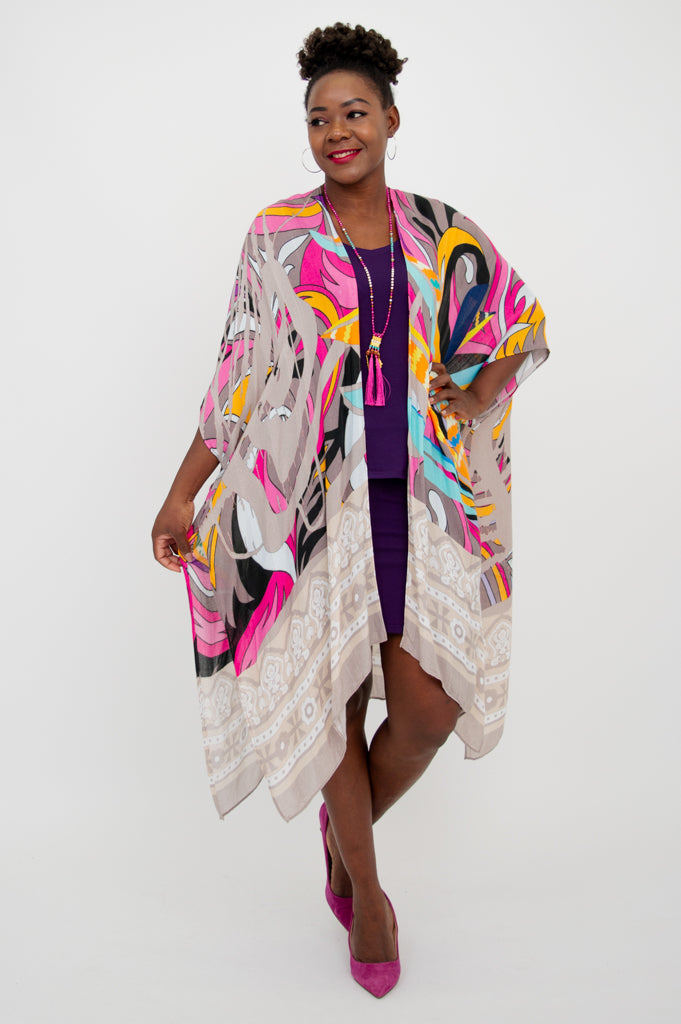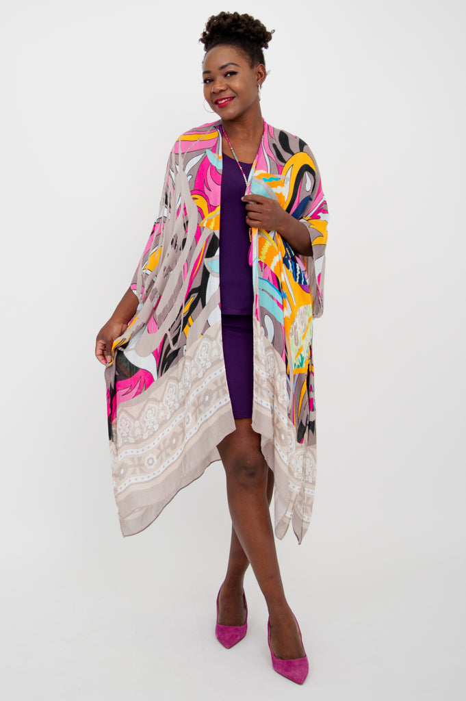 Casually elegant evening wrap, beach cover-up, or lounge wear.