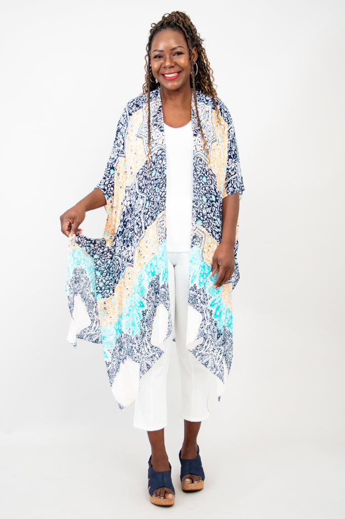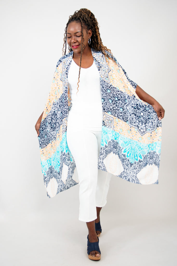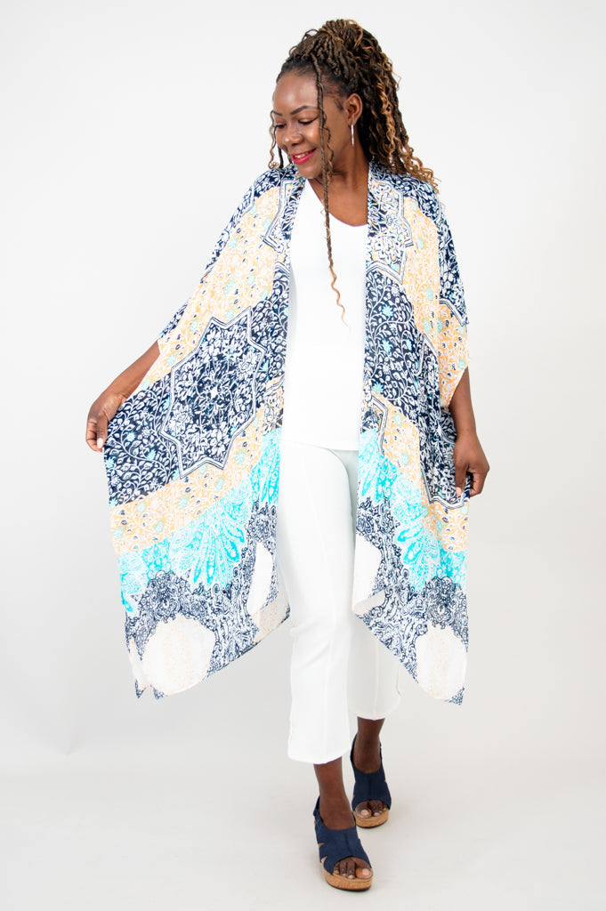 Casually elegant evening wrap, beach cover-up, or lounge wear.
