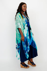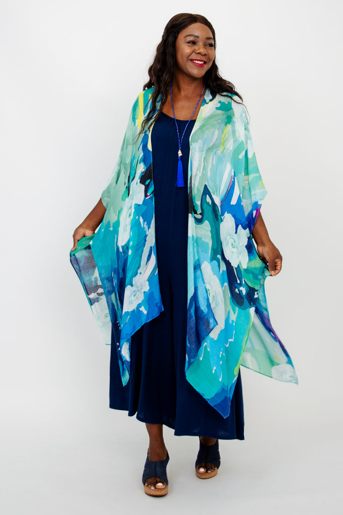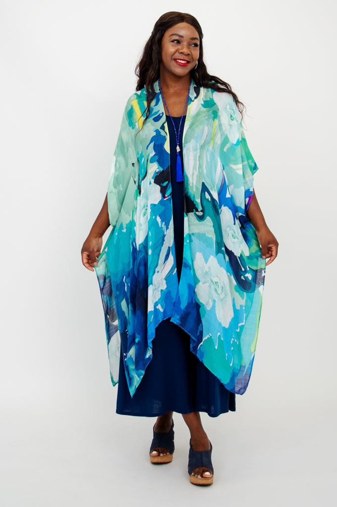 Casually elegant evening wrap, beach cover-up, or lounge wear.