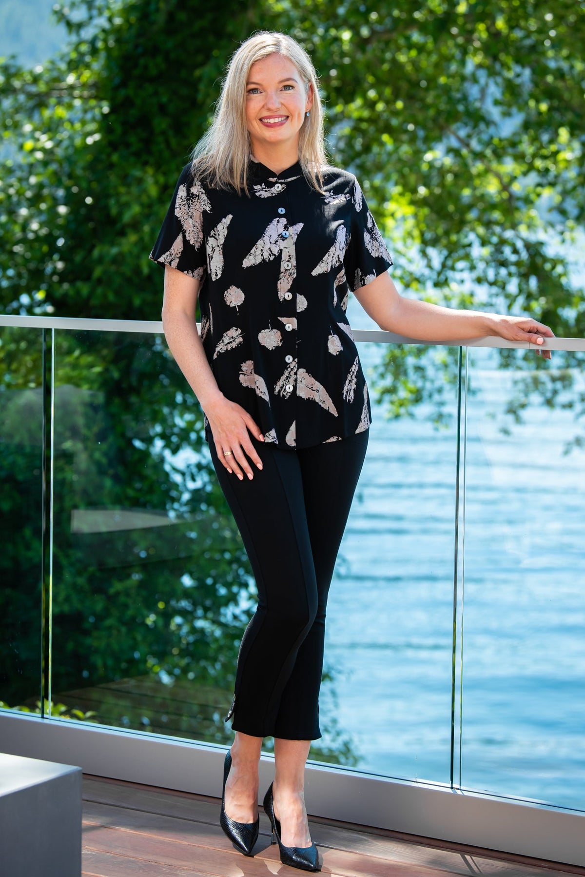 Debra Top, Leaf Shadow, Linen Bamboo - Final Sale