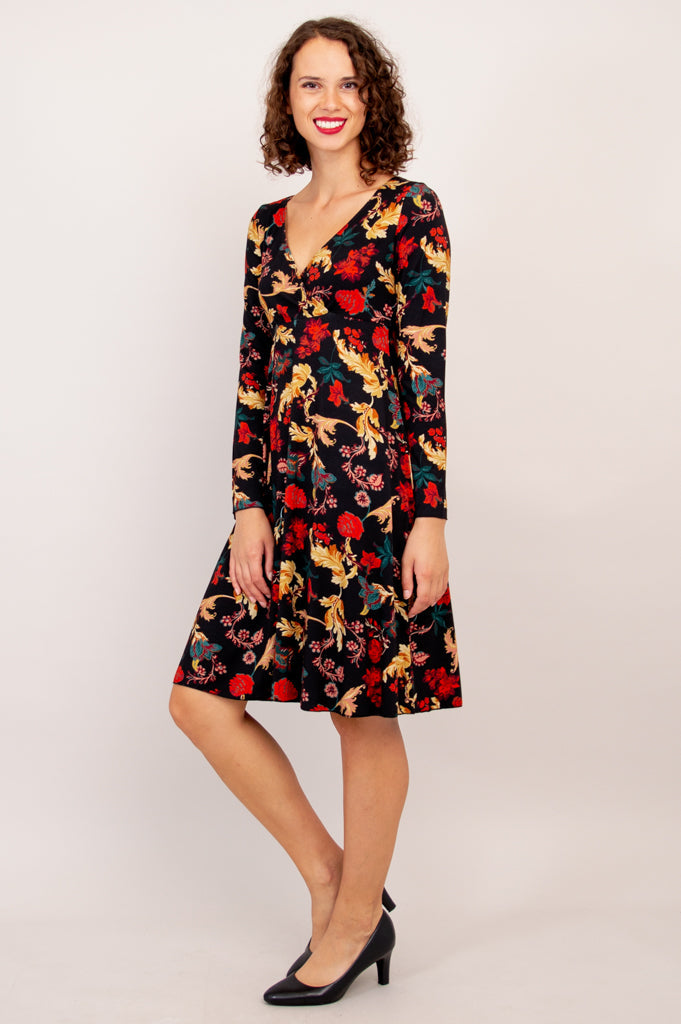 Classic dress style, with a stretch that retains its shape, thanks to our Bamboo fabric. Long sleeves and an empire waist elongate the body. A V-neckline frame the face, and provides the space for accessories. The Denver is designed to give extra room where needed, without excess fabric, which makes layering a breeze during Winter months.