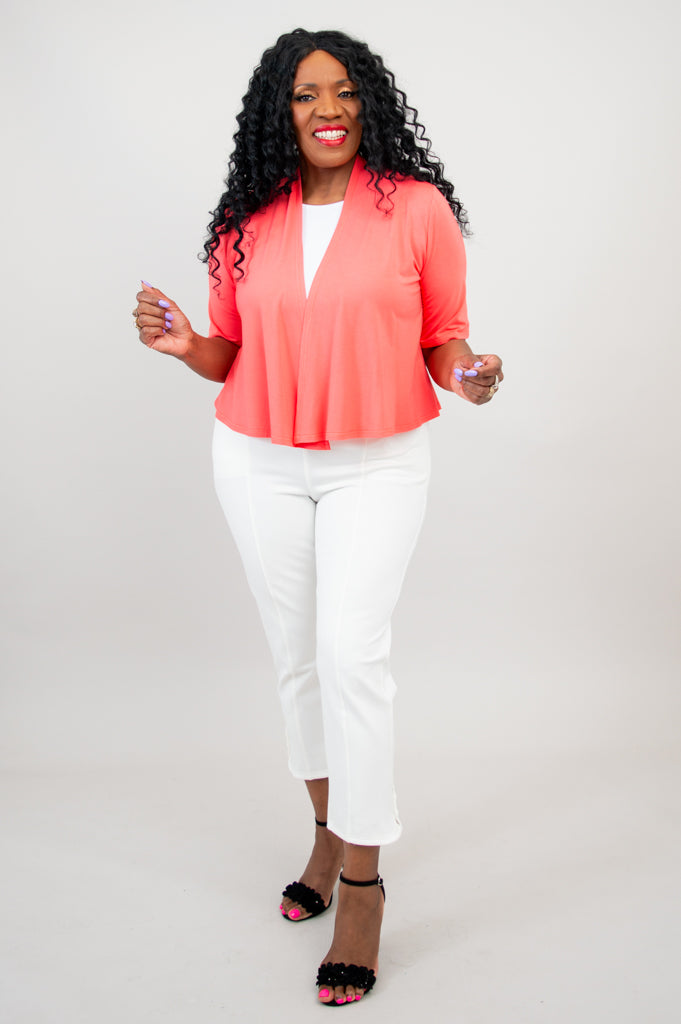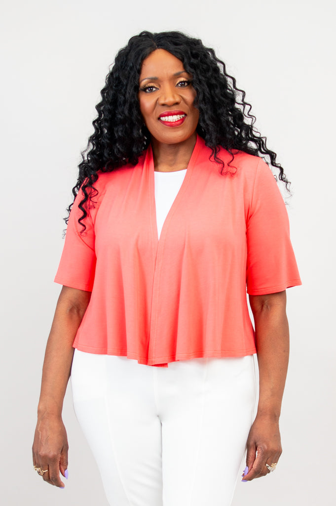 The Doda Jacket is the perfect layer to enhance any outfit. The short sleeves, cropped length hem and Bamboo fabric make it incredibly light and easy to wear. Pair it over any piece where you want some extra coverage.