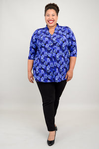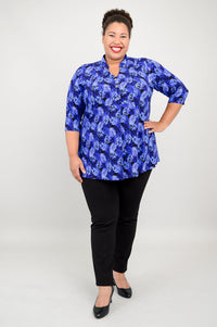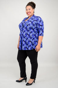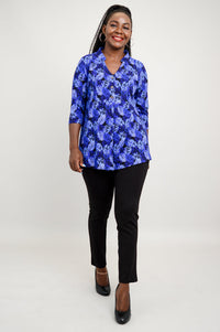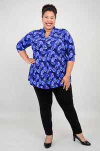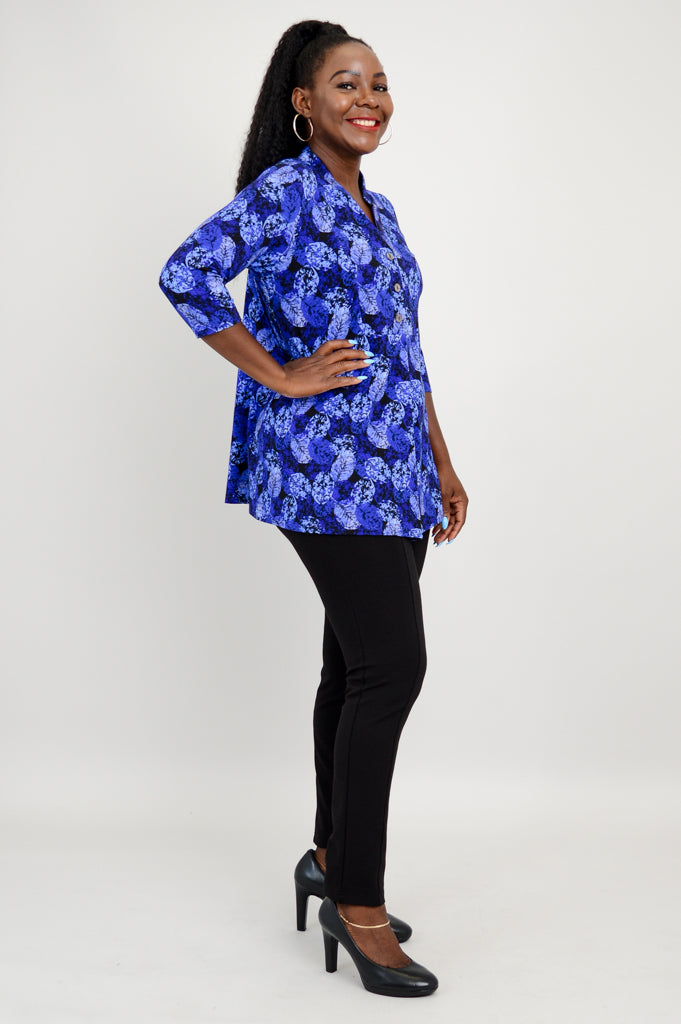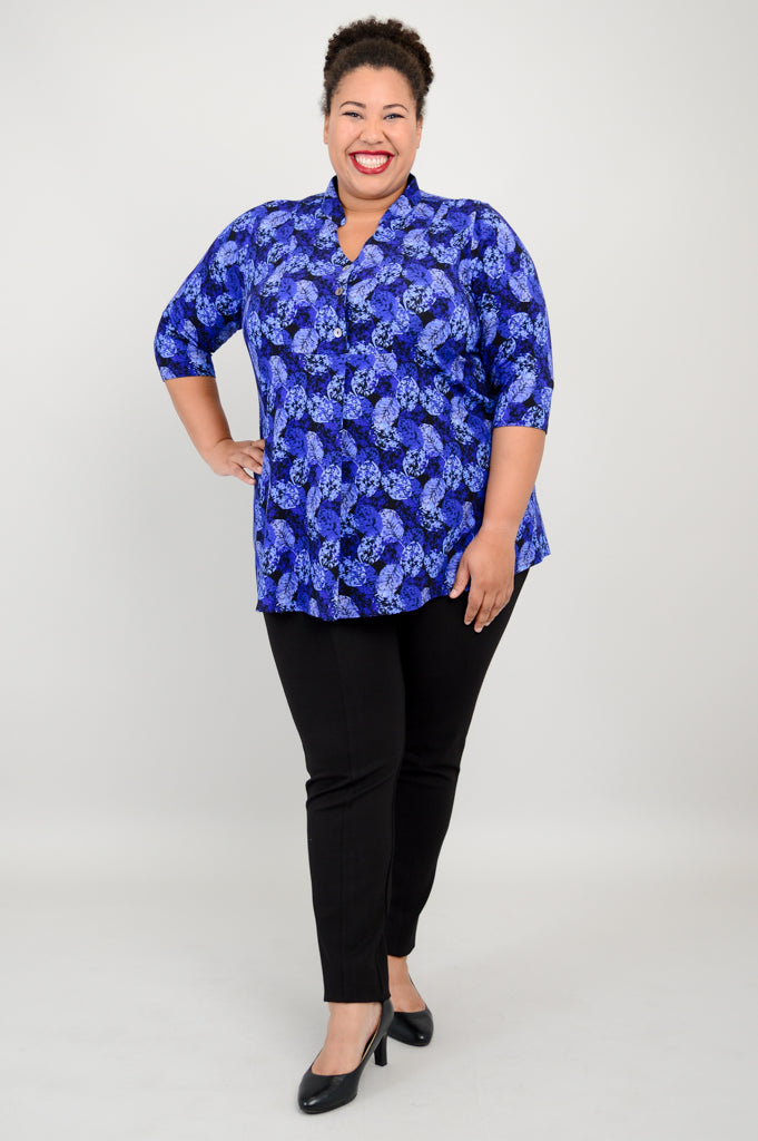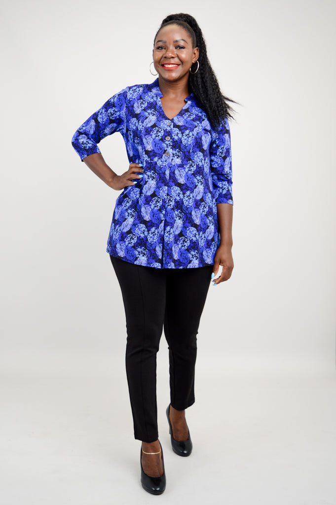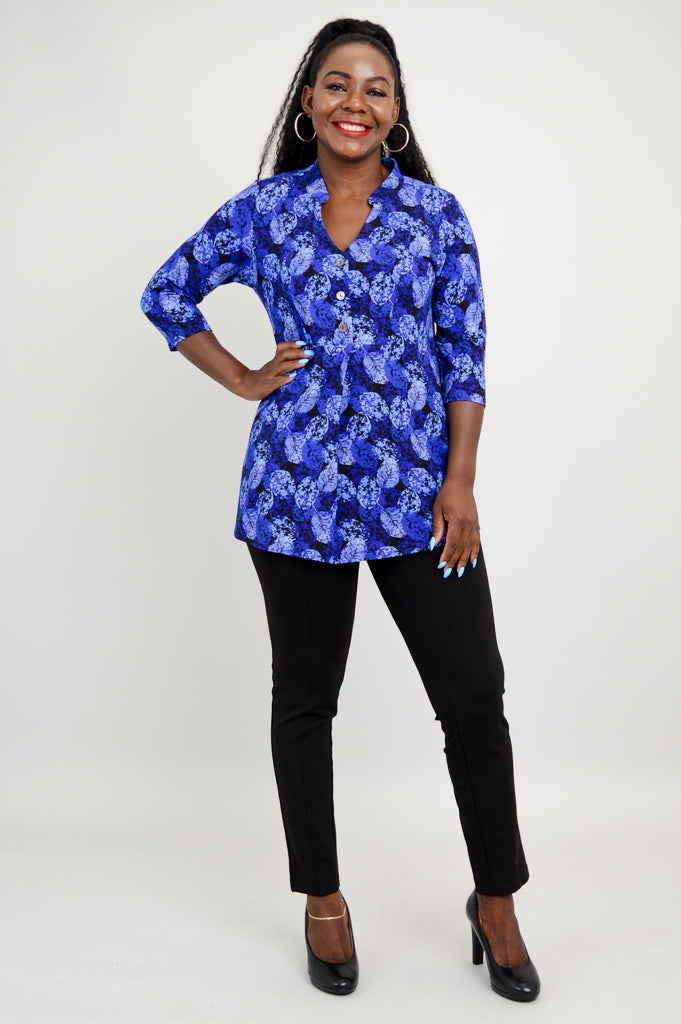 The Edwina is pullover style top made in our soft, breathable Bamboo fabric. It features a V-neck, 3/4 sleeves and a 3 button placket.