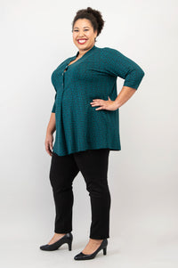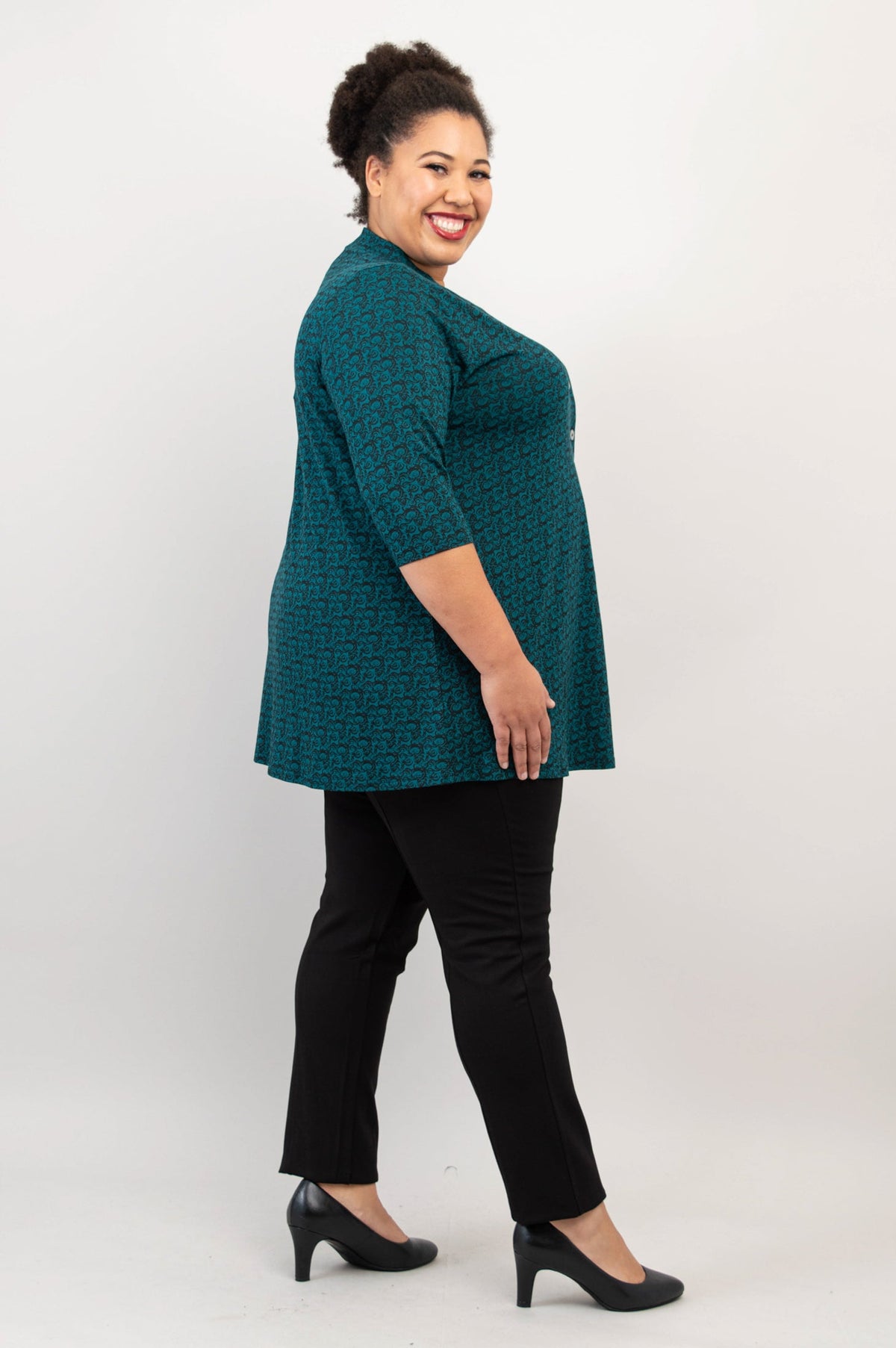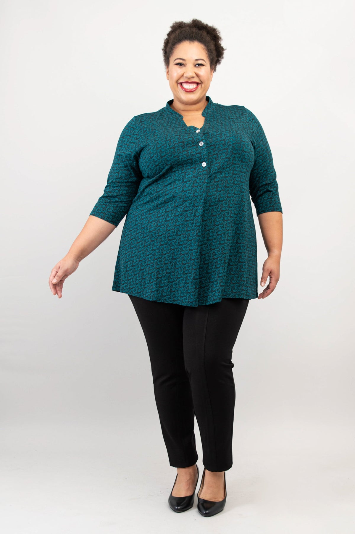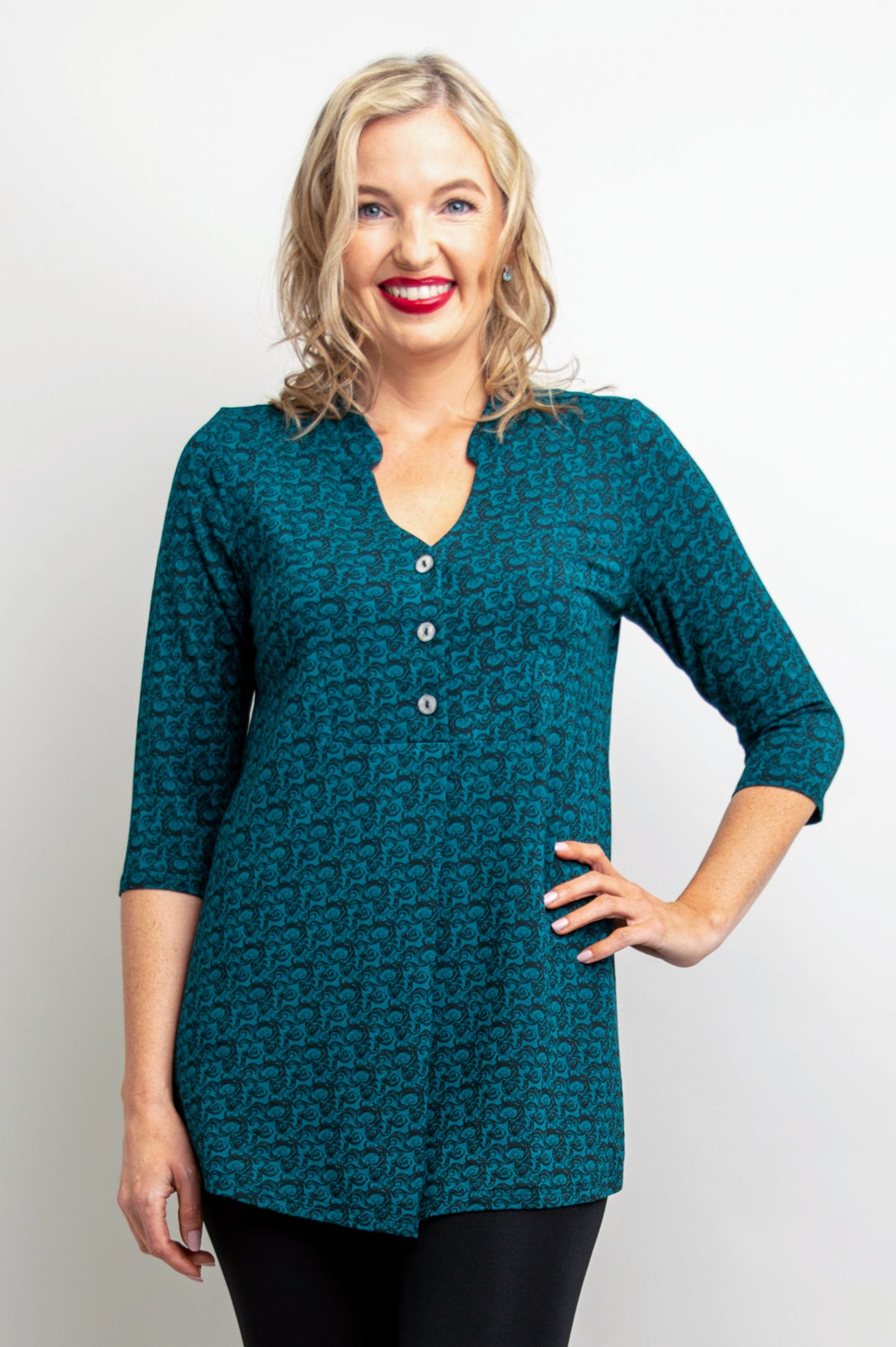 The Edwina is pullover style top made in our soft, breathable Bamboo fabric. It features a V-neck, 3/4 sleeves and a 3 button placket.