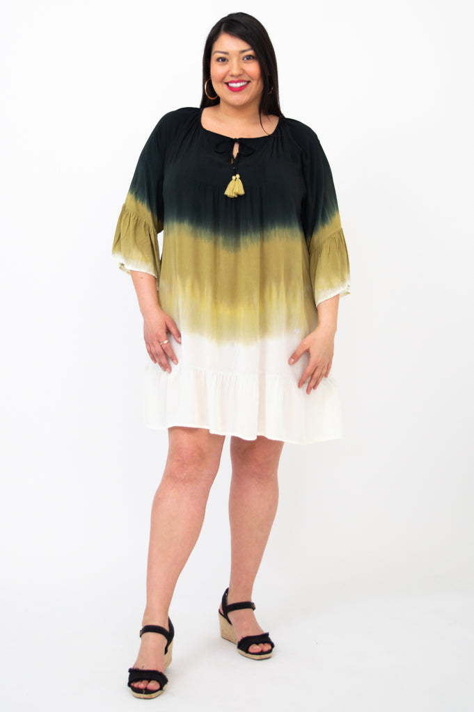 The Ellie Dress is a perfect blend of boho charm and modern flair. This lightweight flowy dress features a 3/4 length sleeve with a ruffle detail and a flounce hem just above the knee. You can take this dress anywhere from the beach to dinner out.
