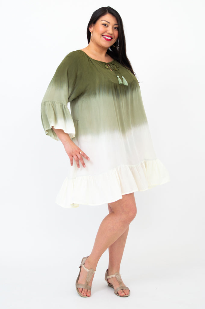 The Ellie Dress is a perfect blend of boho charm and modern flair. This lightweight flowy dress features a 3/4 length sleeve with a ruffle detail and a flounce hem just above the knee. You can take this dress anywhere from the beach to dinner out.