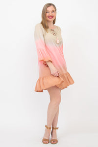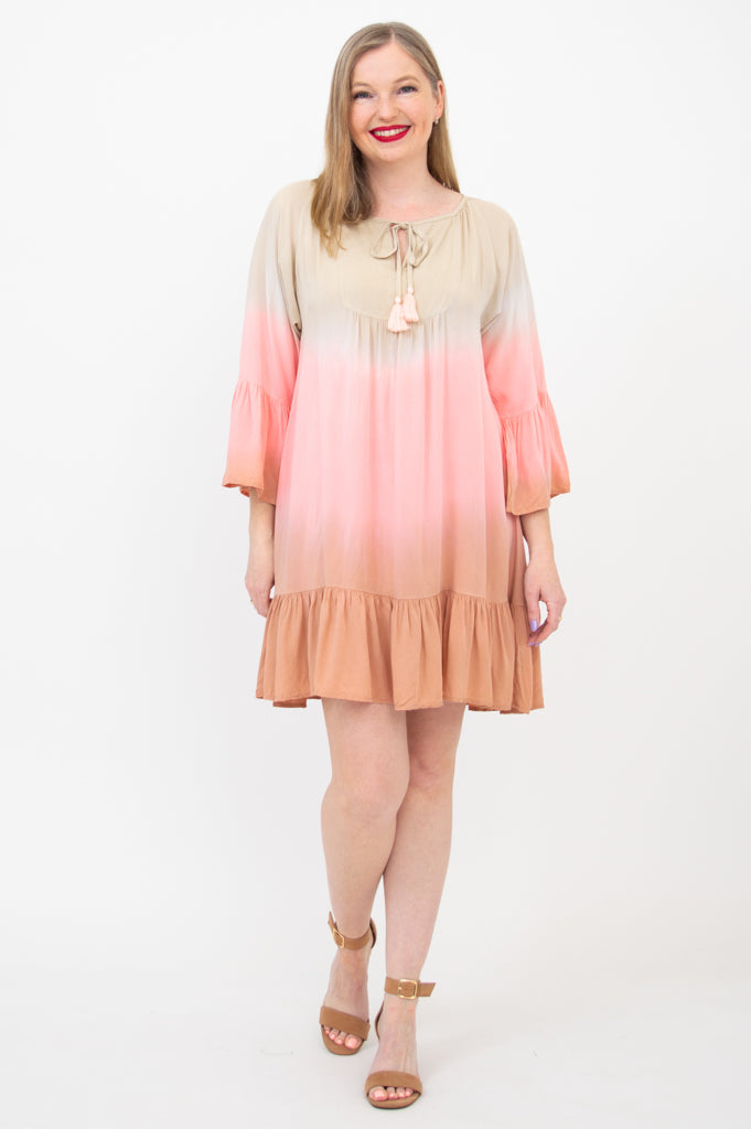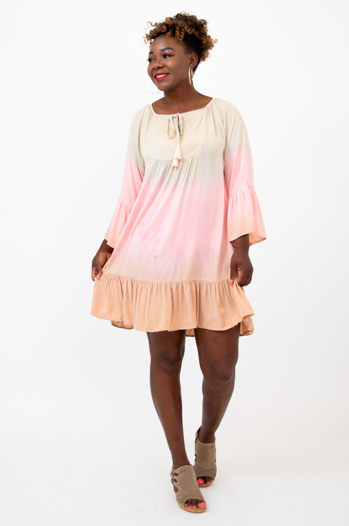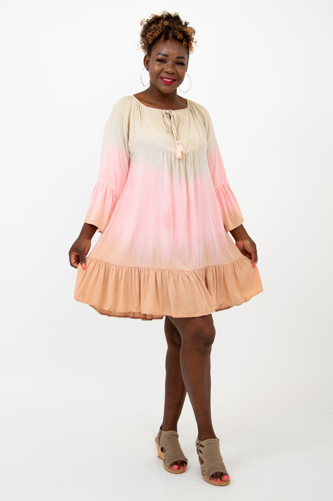 The Ellie Dress is a perfect blend of boho charm and modern flair. This lightweight flowy dress features a 3/4 length sleeve with a ruffle detail and a flounce hem just above the knee. You can take this dress anywhere from the beach to dinner out.