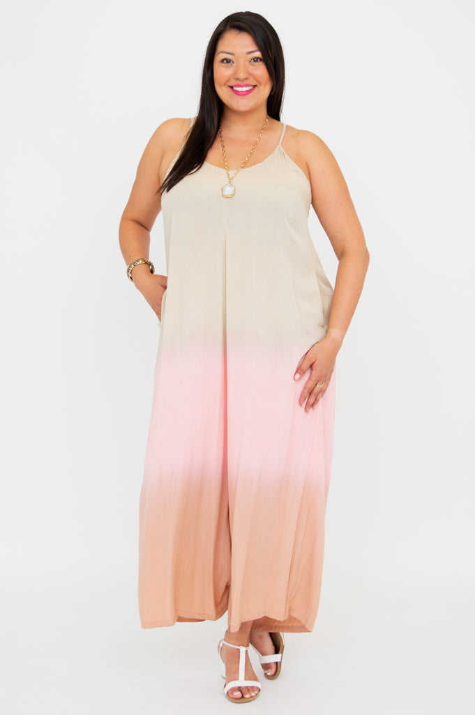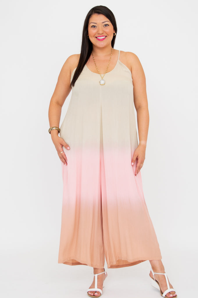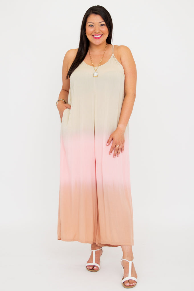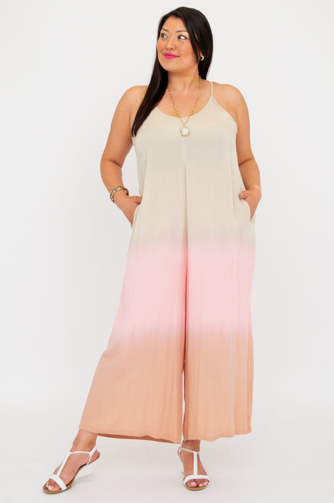 This jumpsuit makes for the perfect summer outfit with it's boho chic style. Adjustable spaghetti straps, pockets, and a v-neckline, you can bring this one-piece from the beach to dinner out.
