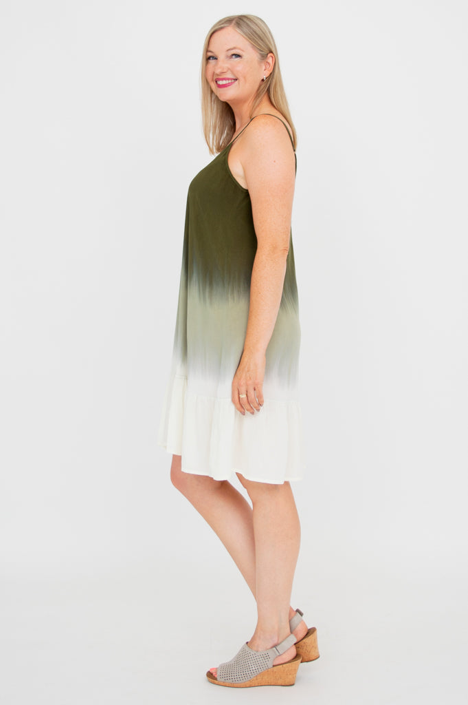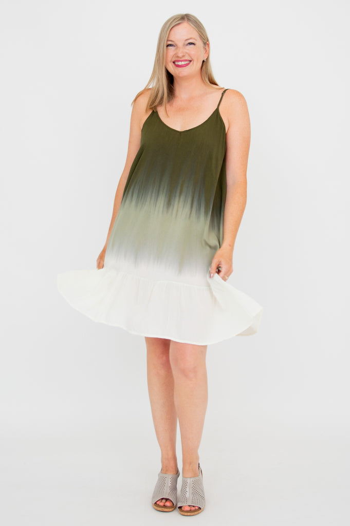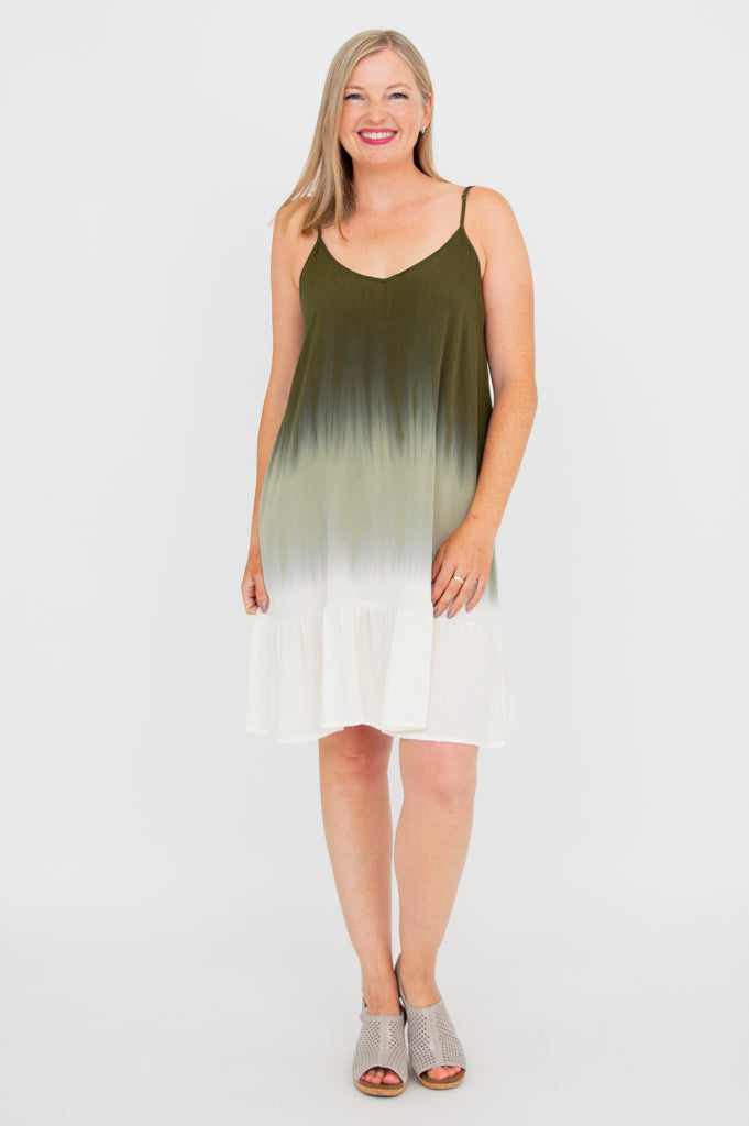 This lightweight, tiered dress falls just above the knee.  With a Boho vibe, this will be your go to for warm days and tropical vacations!