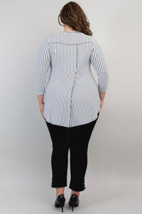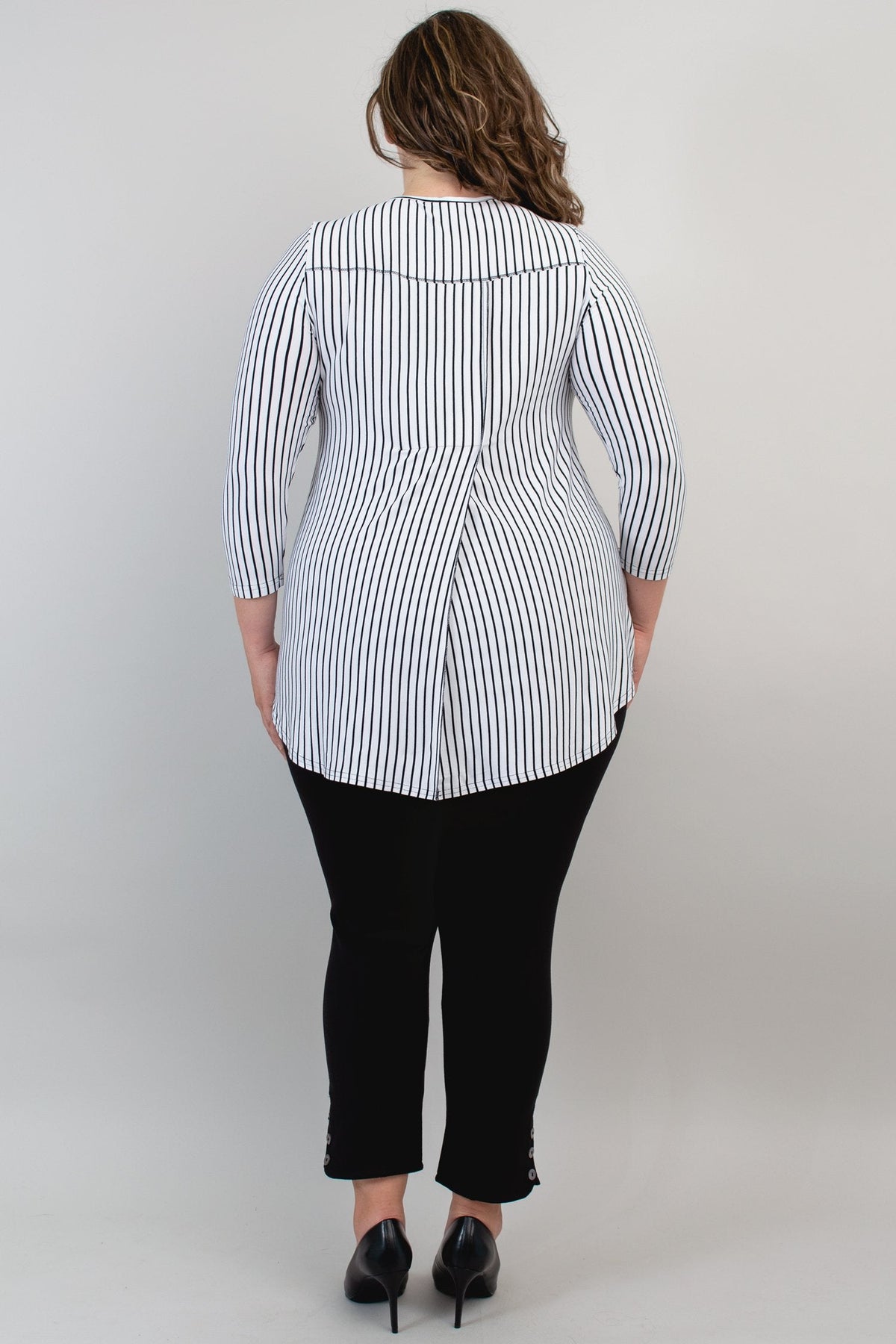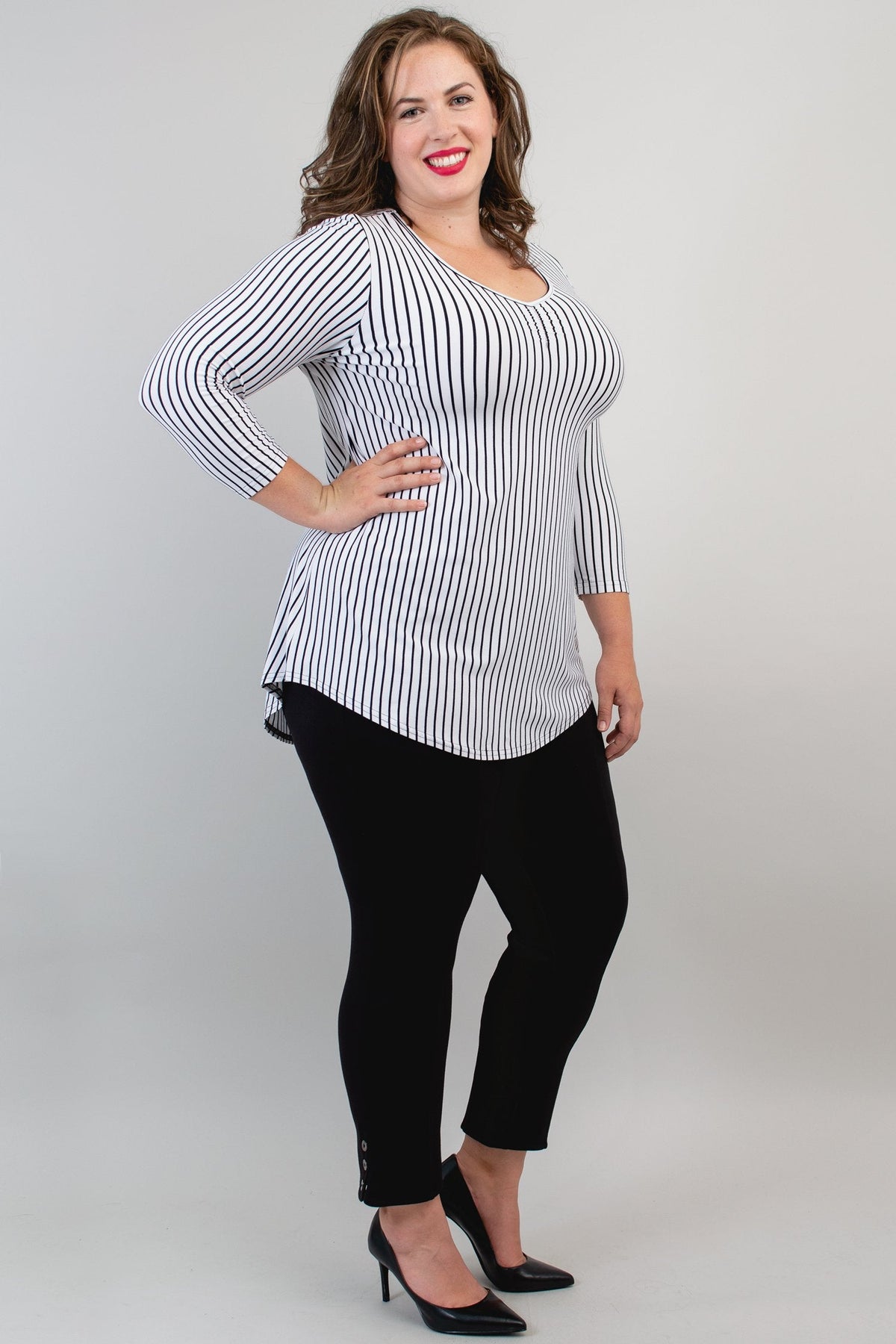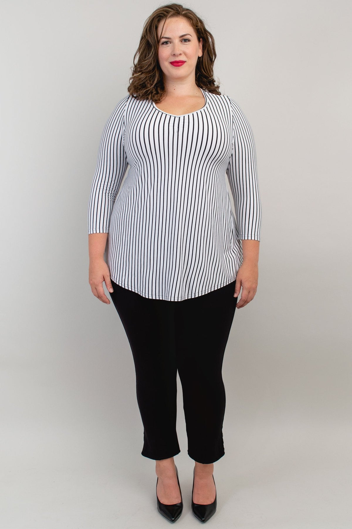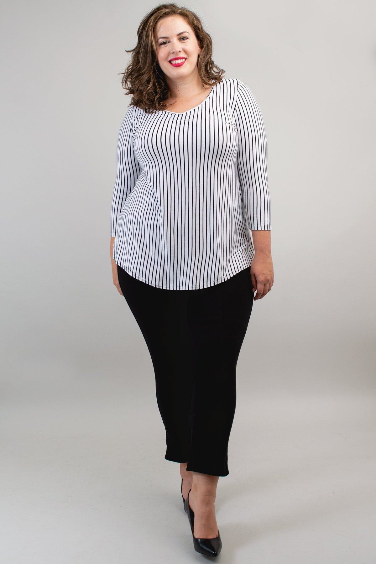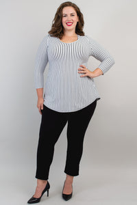 Franny Top, White/Black Small Stripe, Bamboo- Final Sale