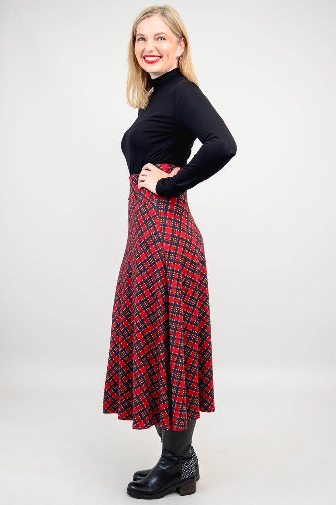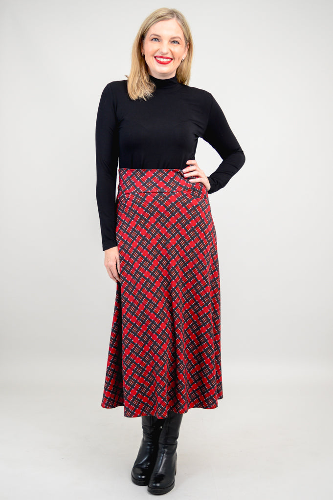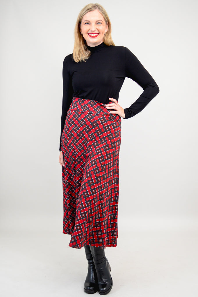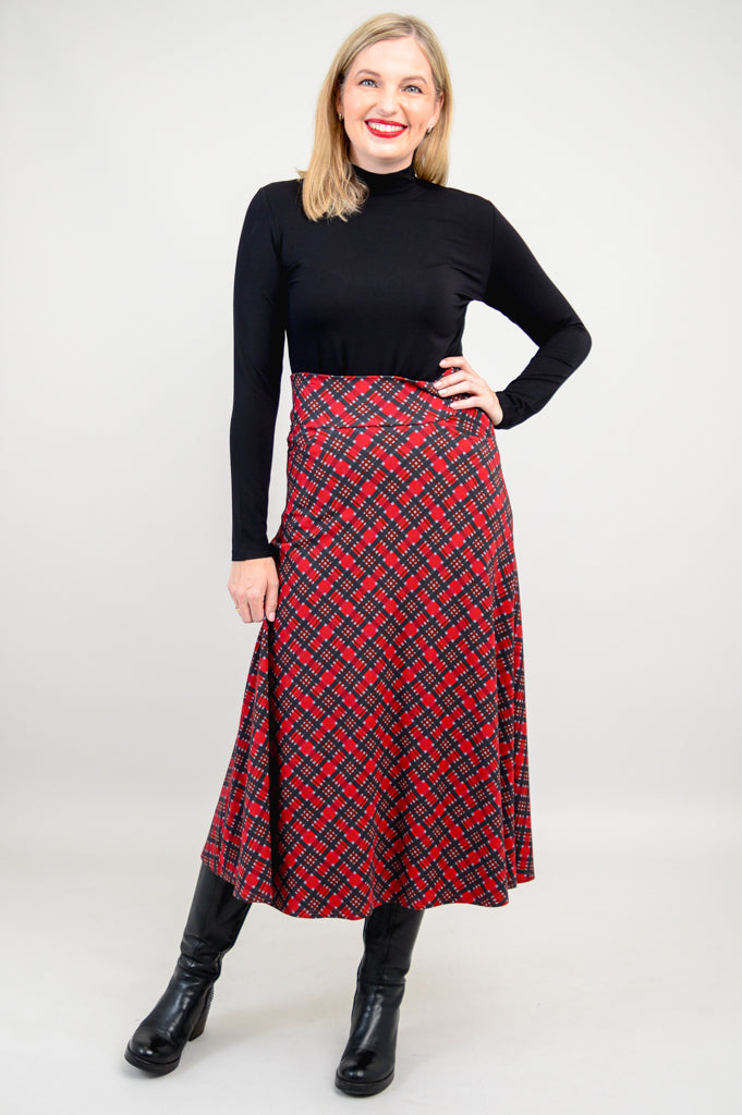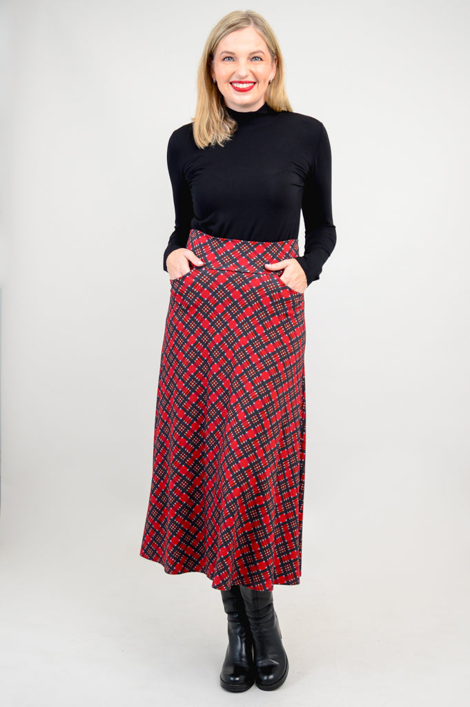 The Gillian is a midi-length, effortless skirt. It features pockets, self fabric waistband and an A-line shape. Wear it dressed up or more casually with boots or sneakers.
