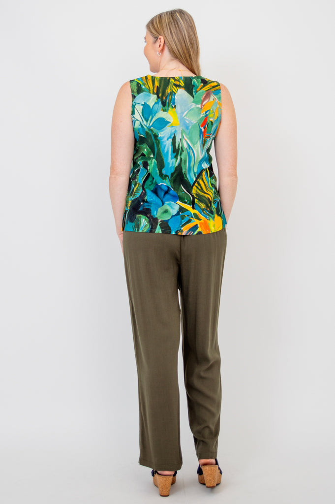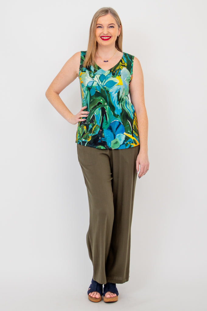 The Hannah is a V-neck tank with wide shoulder straps and gentle tapering at the sides. It is an easy fit that is very flattering.