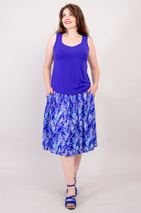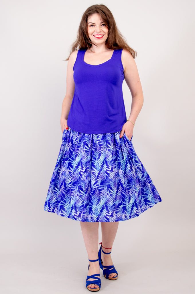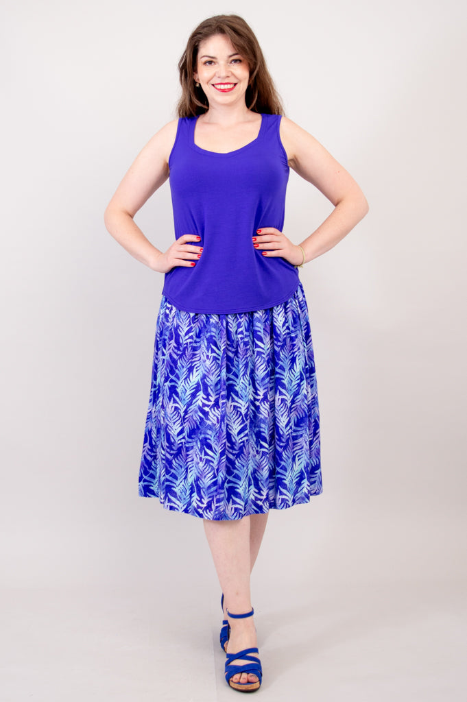 With a hem just below the knee and a stretchy self fabric waistband, you are sure to be incredibly comfortable in this linen bamboo skirt