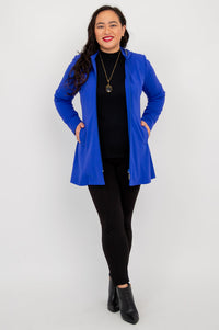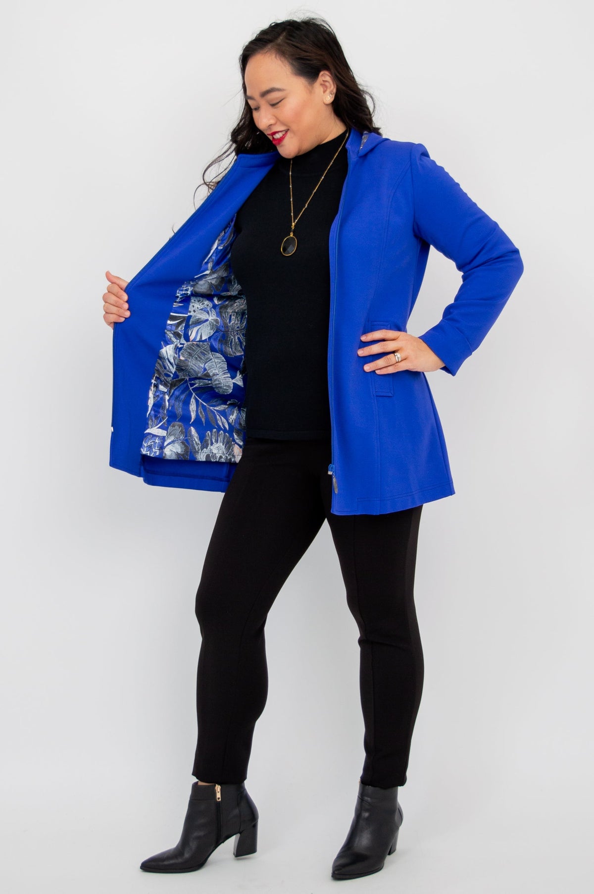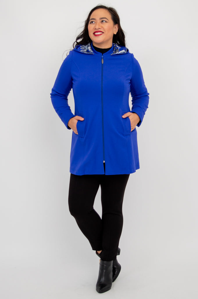 With a hem that hits high on the thigh, it provides just the right amount of coverage. Seaming down the front and back gives the coat shape, and the zip-up closure makes for quick changes. Style it with slim pants, and tall boots for a simple but modern look.