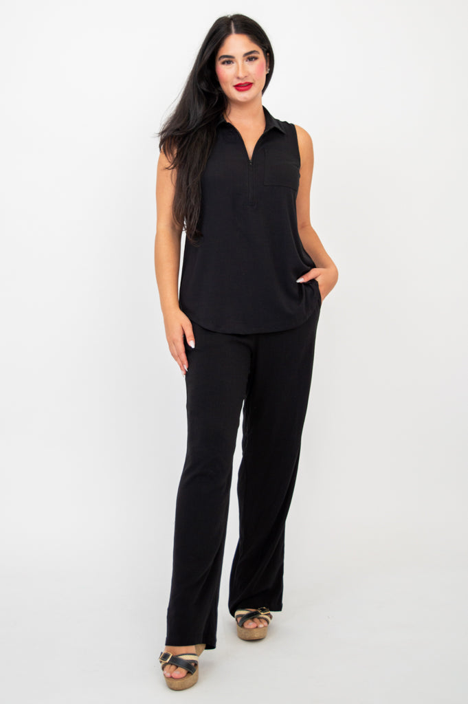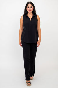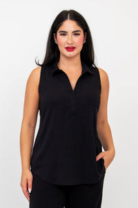 The Hula is a revolutionary tank top. Features a quarter zipper allowing for an adjustable V-neck or a collared neckline. The curved hemline gives the tank a relaxed fit. Pair with loose-fitted pants for a casual yet sophisticated look.