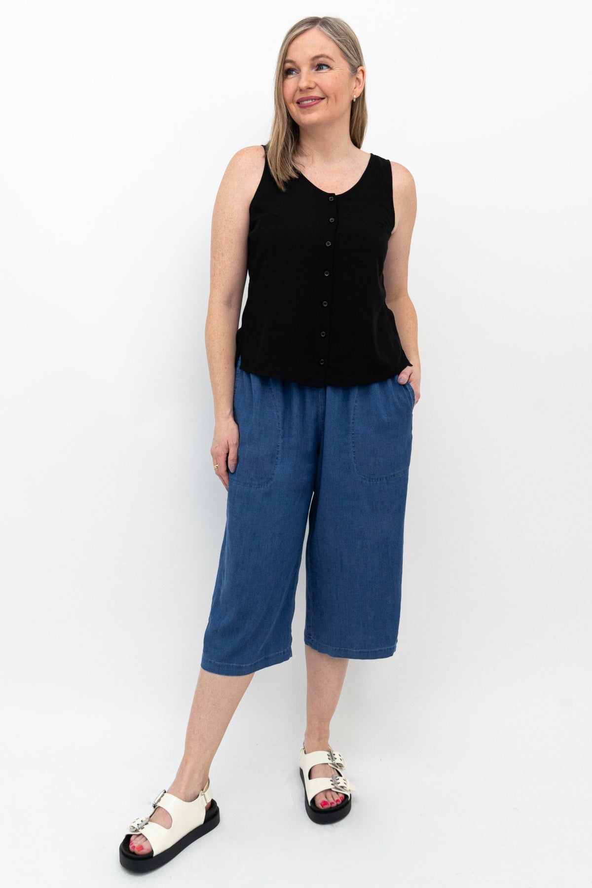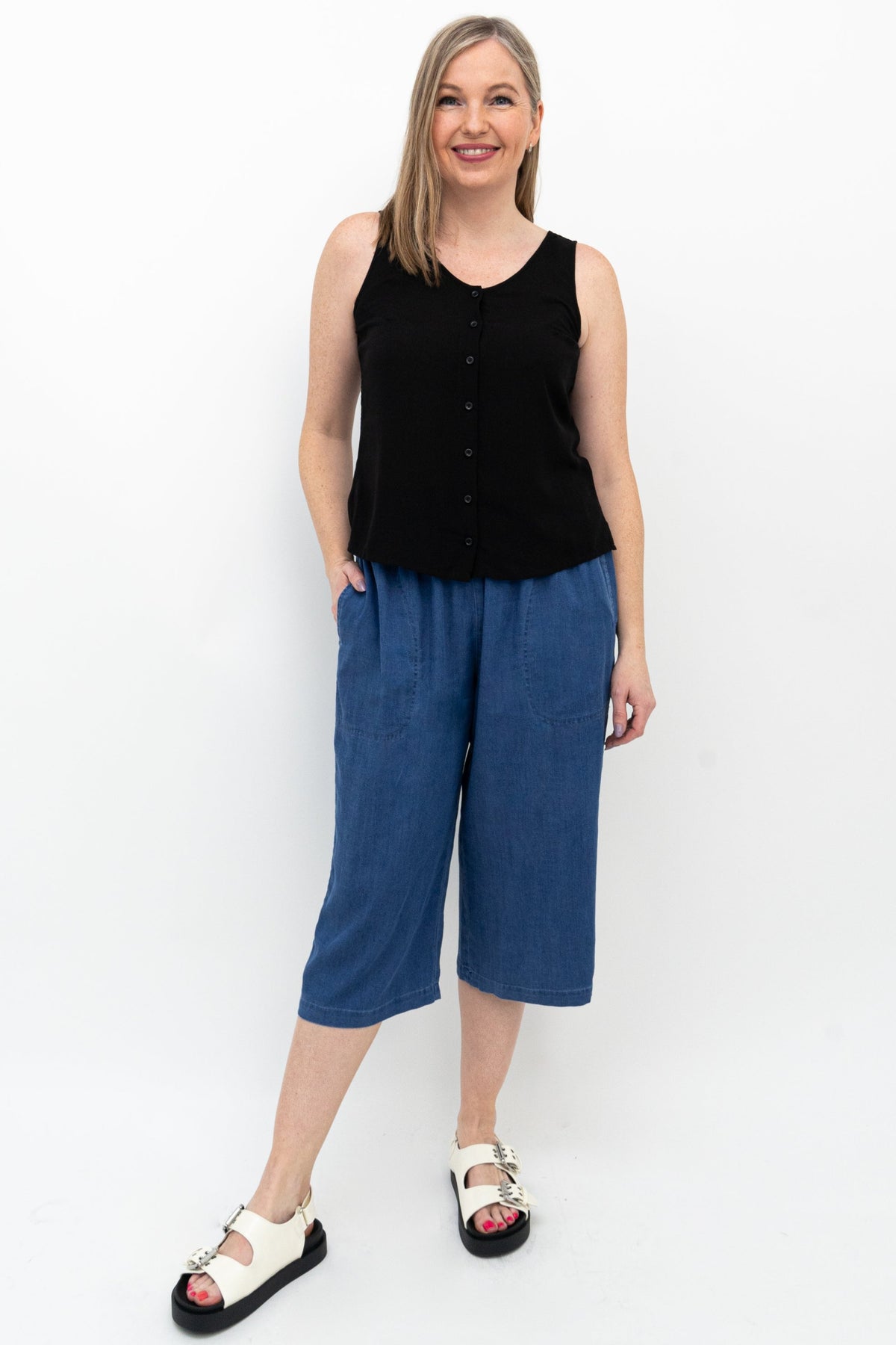 The Jamie Capri is a simple, chic and a relaxed fit for every body.The eco-friendly Tencel Denim fabricmake these pants incredibly light weight and comfortable. Pair with one of our Tencel denim jackets, Kelly, Colleen, or Holly for a polished all denim look.