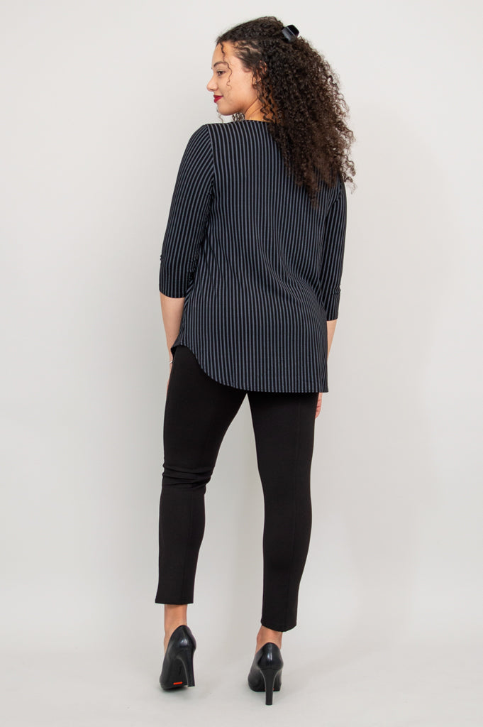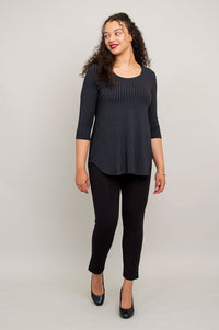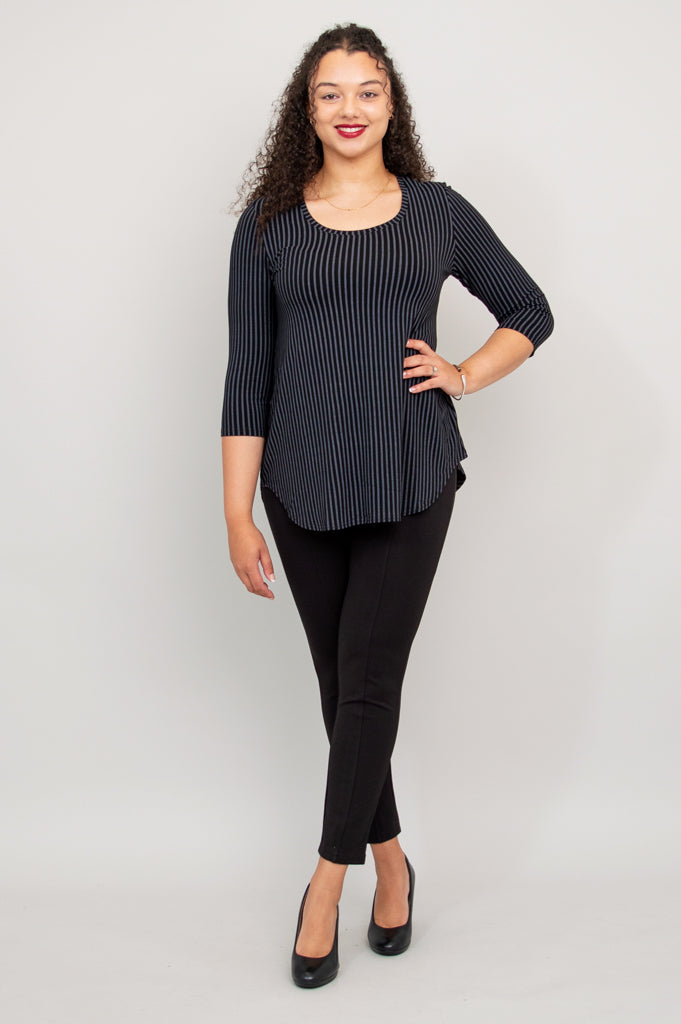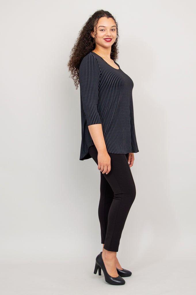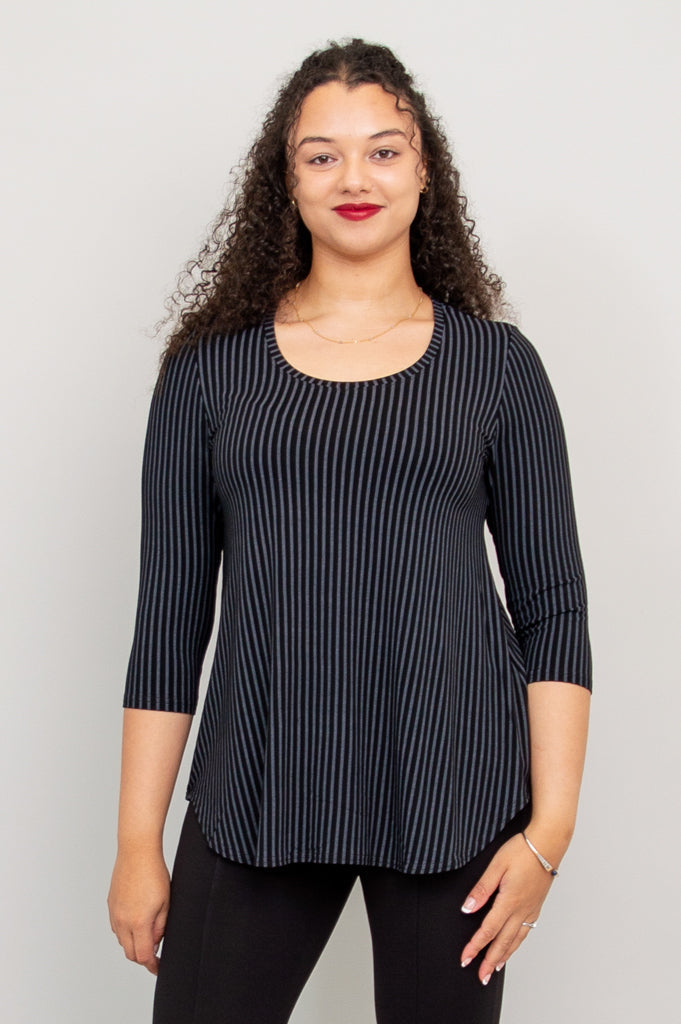Jazz 3/4 Slv Top, Blk/Grey Stripe, Bamboo - Final Sale