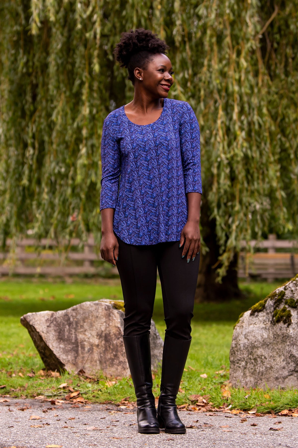 Jazz 3/4 Top, Midnight Leaves, Bamboo - Final Sale