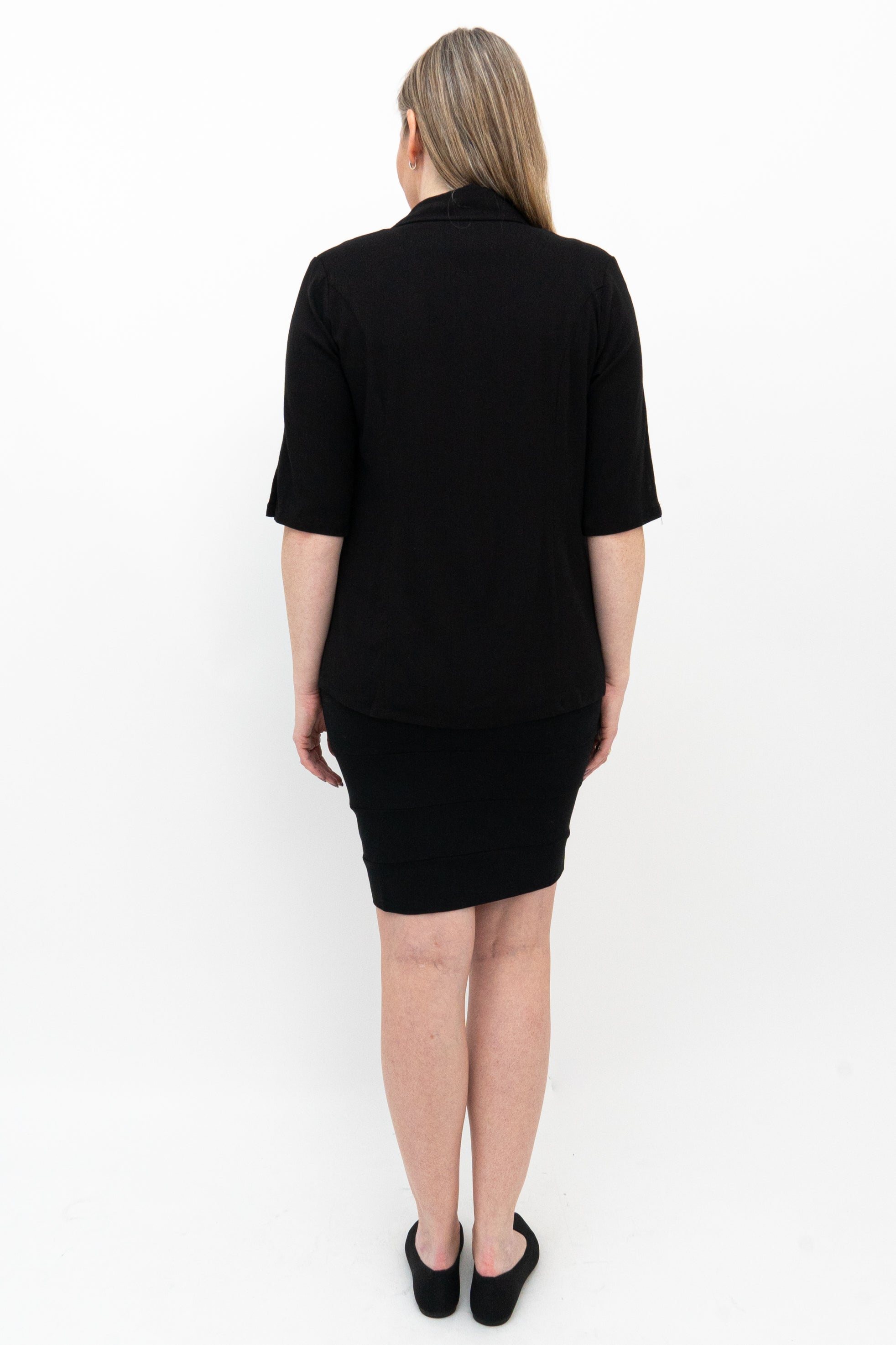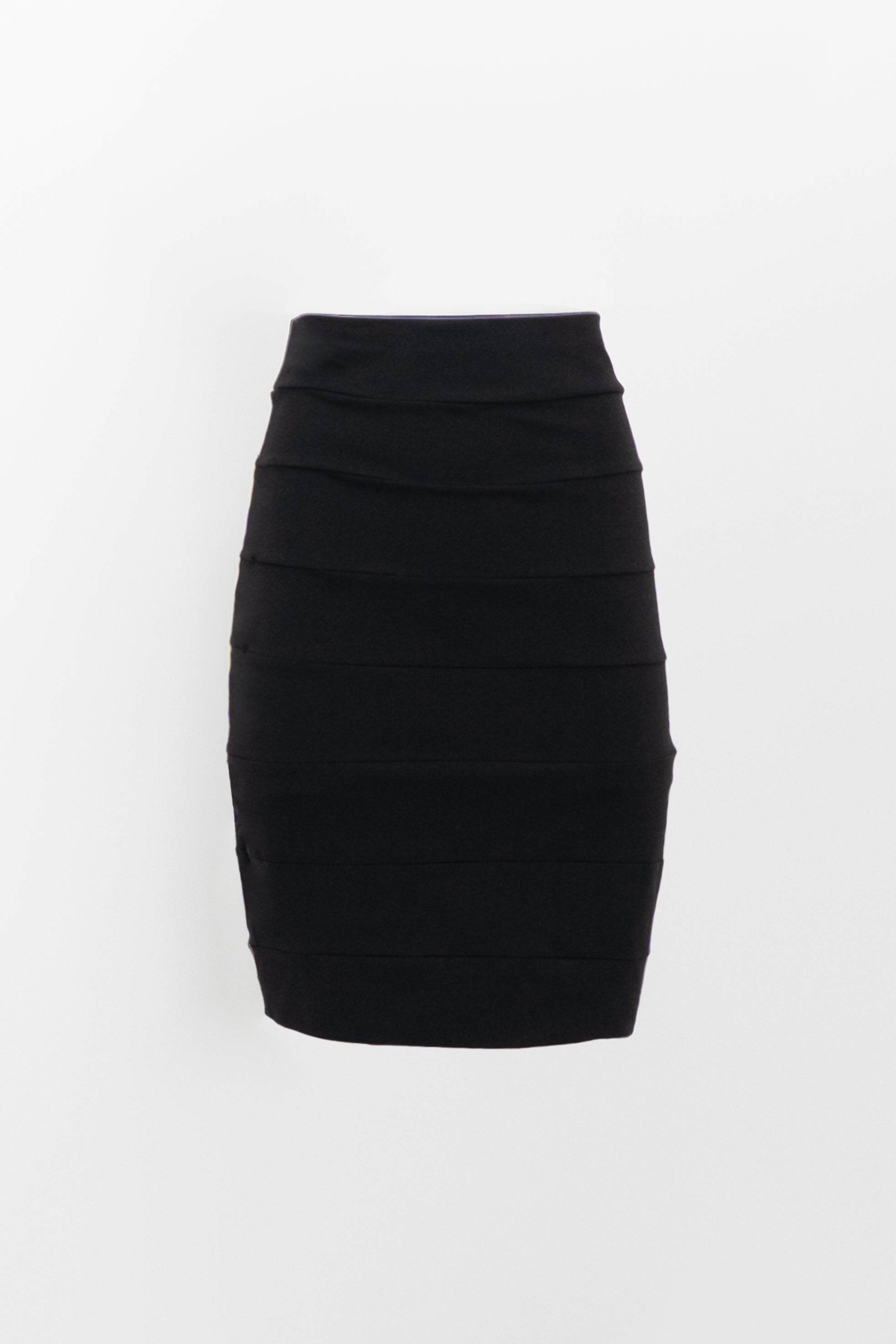 Our Jonelle is a fitted stretch pencil skirt. Features horizontal bands to flatter your shape. Wear casual with a tee or dress it up for work with your favourite blouse.