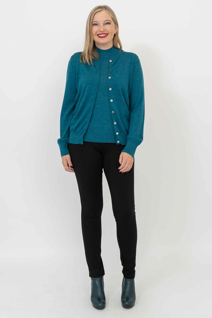 The Kitten Cardigan is made of our soft, fine Merino Wool. It is a classic style featuring a crew neck, small buttons and ribbed cuffs and hem. Layer it over our Rita Sweater for a perfectly coordinated sweater set.