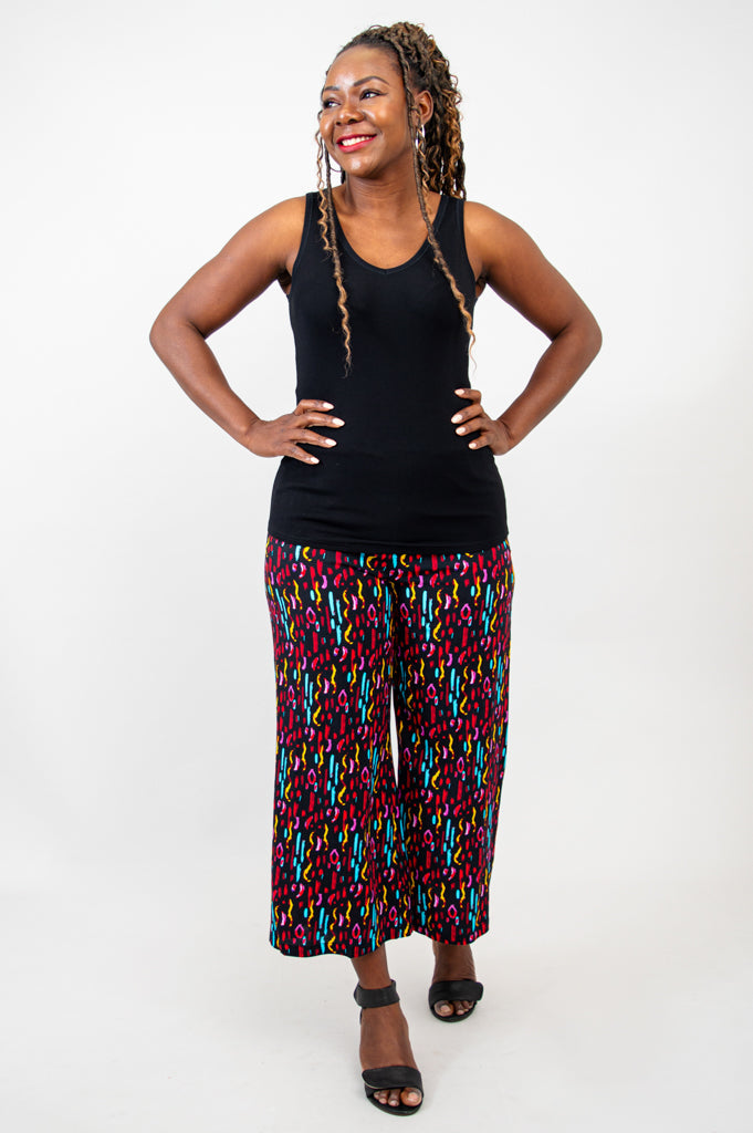 A Capri version of our best-selling Landon Pant. This easy pull on pant features a wider leg from hip to hem.  The bamboo waistband can be worn high or folded over.