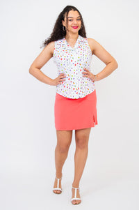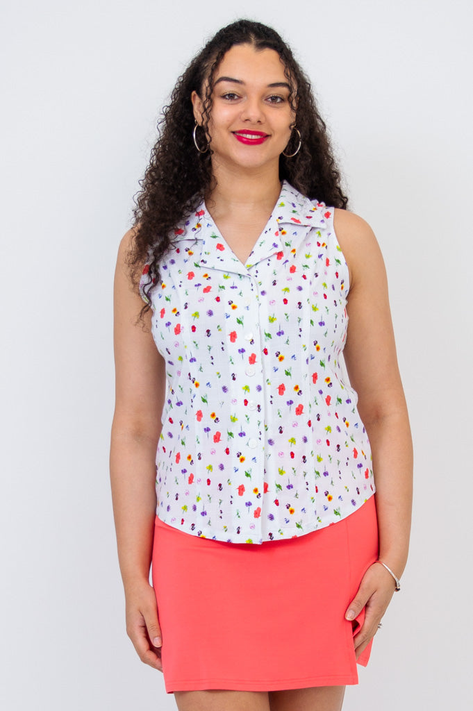 Soft, breathable Linen/Bamboo fabric in a tailored sleeveless shirt style. The Lexa is great paired with capri pants or layered under a cardigan on cooler days.