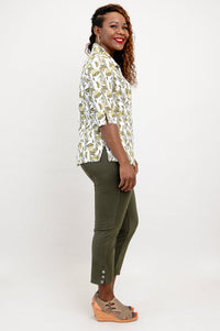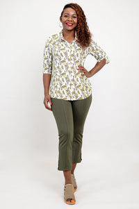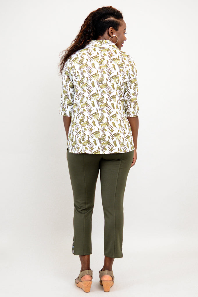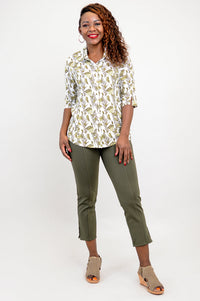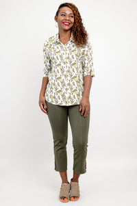 A tailored blouse in cool, breathable Bamboo/Linen fabric. The Lorine features a small collar and princess seams that make it appropriate for the office, or a dinner out. 3/4 length sleeves are elevated by a small slit at the elbow. Pair the Lorine with slim, capri pants.