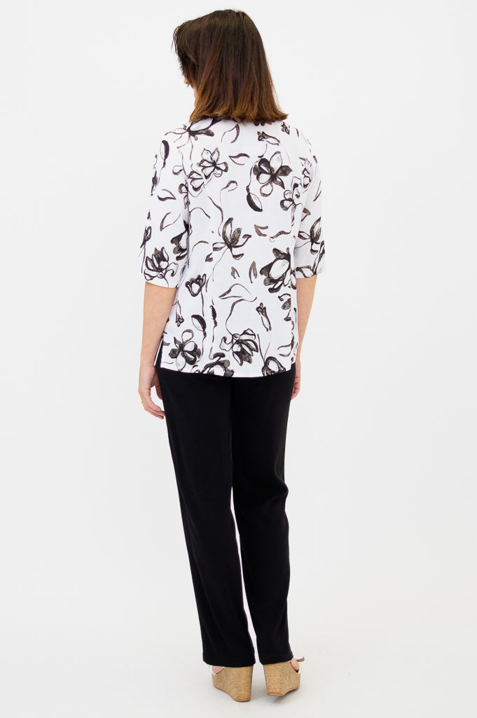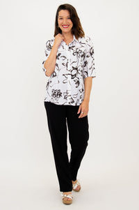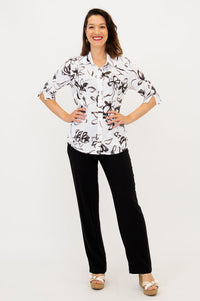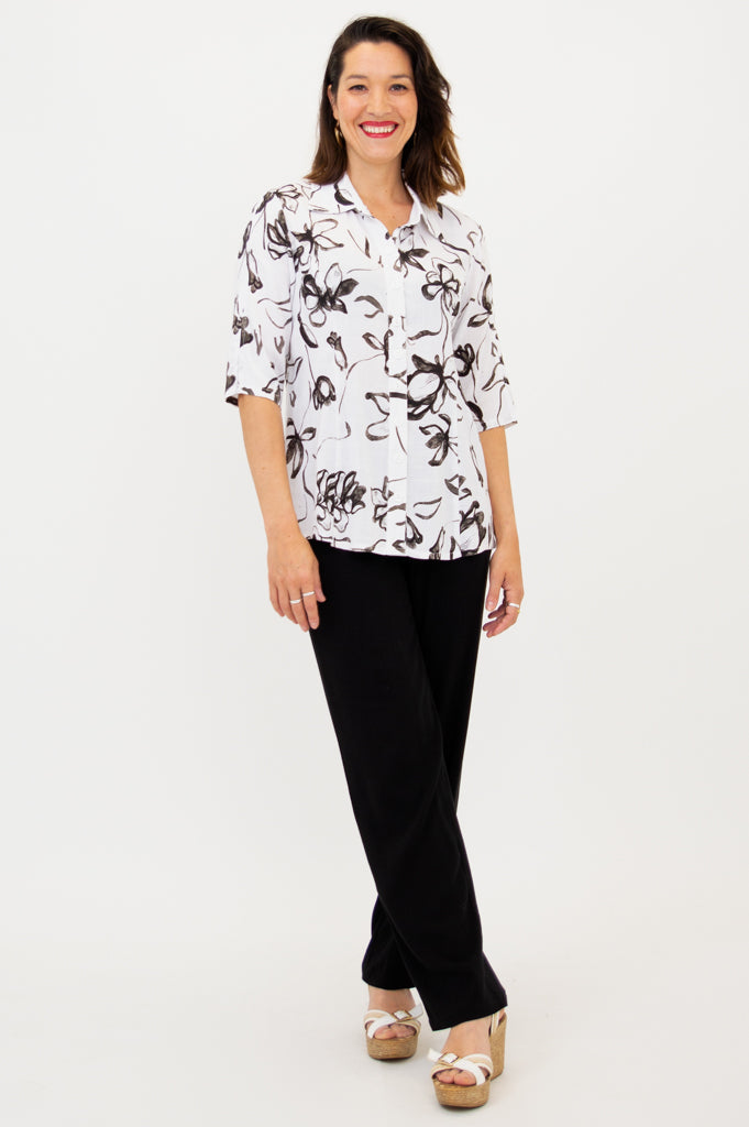 A tailored blouse in cool, breathable Bamboo/Linen fabric. The Lorine features a shirt collar and princess seams. The sleeve falls just below the elbow with a small slit. Pairs nicely with a pant or skirt.