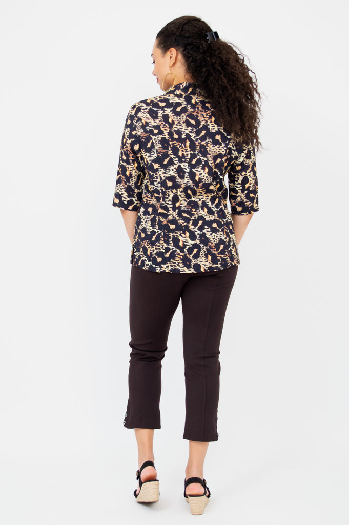A tailored blouse in cool, breathable Bamboo/Linen fabric. The Lorine features a shirt collar and princess seams. The sleeve falls just below the elbow with a small slit. Pairs nicely with a pant or skirt.