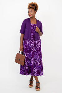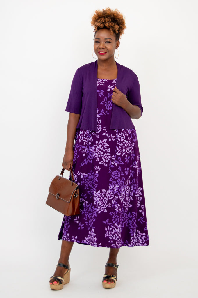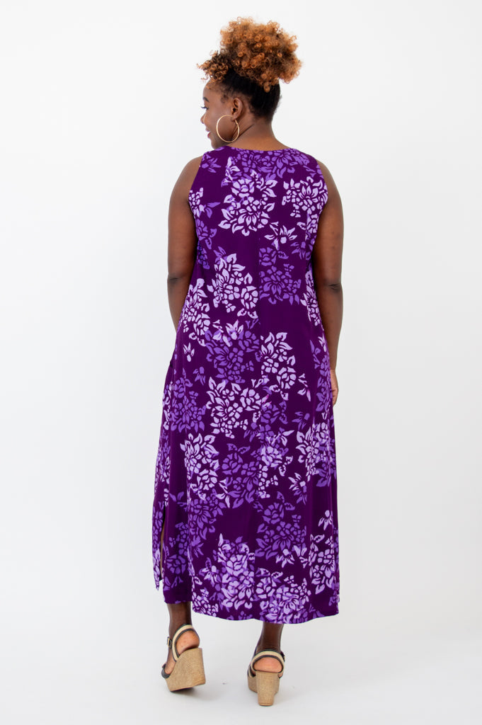 A clean square neckline and wide straps establish the fit, then darts at bust ensure the bodice sits easily. Square patch pockets break the line with symmetry, in subtle contrast to shaped panel vents at either side. From there, the dress falls in an easy elongated A-line to low calf.