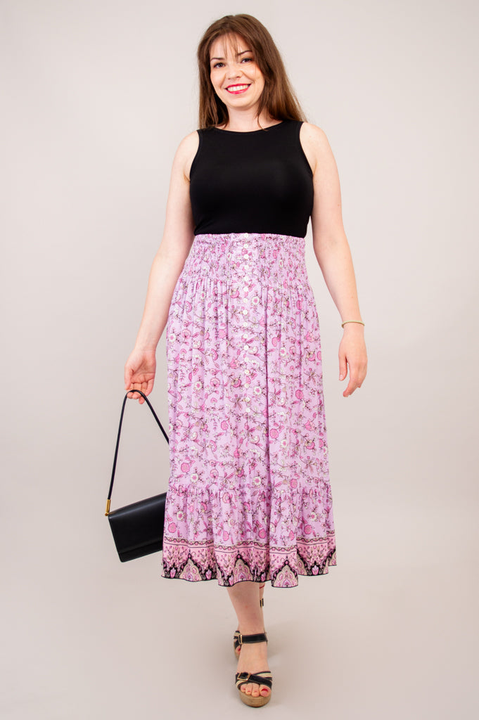 Pair this skirt with one of our basic tanks like the Reanna Tank and your favourite jewelry for a gorgeous summer outfit.