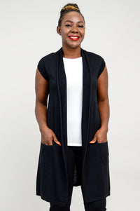 This go-over-anything piece provides that finishing layer - warmth, coverage, and style - in light-gauge Bamboo/Cotton. The soft shawl collar is long and narrow, for a vertical line that lengthens the body. A touch of extra length ensures the coverage you're looking for. Two medium patch pockets ground the look, and add utility. Wear it over tunics, sweaters, or dresses. The Miranda is a versatile Winter piece that transforms outfits.