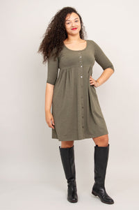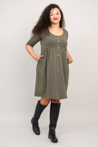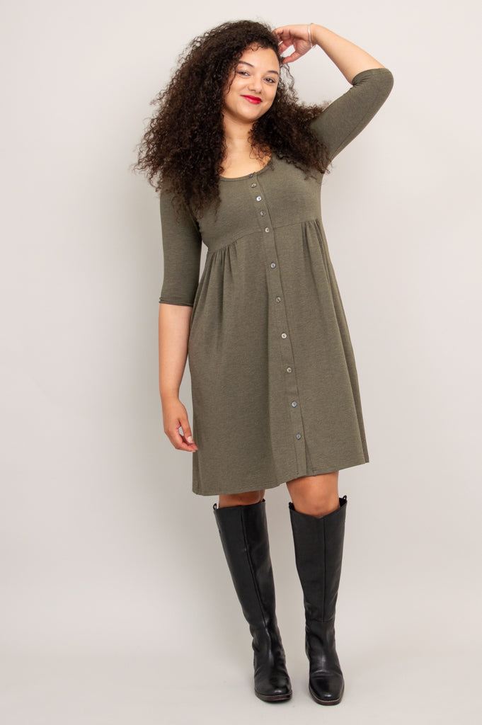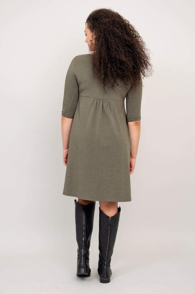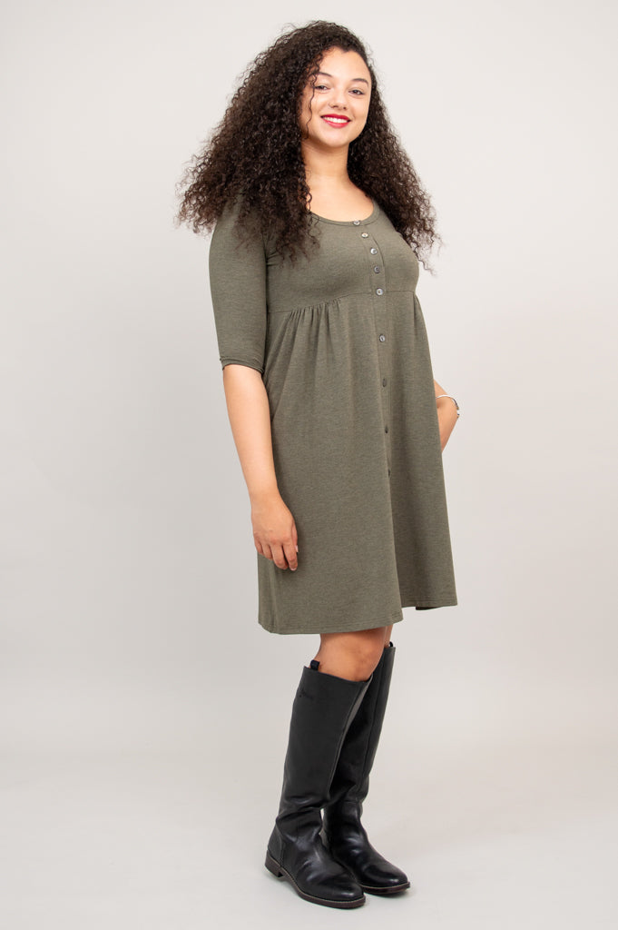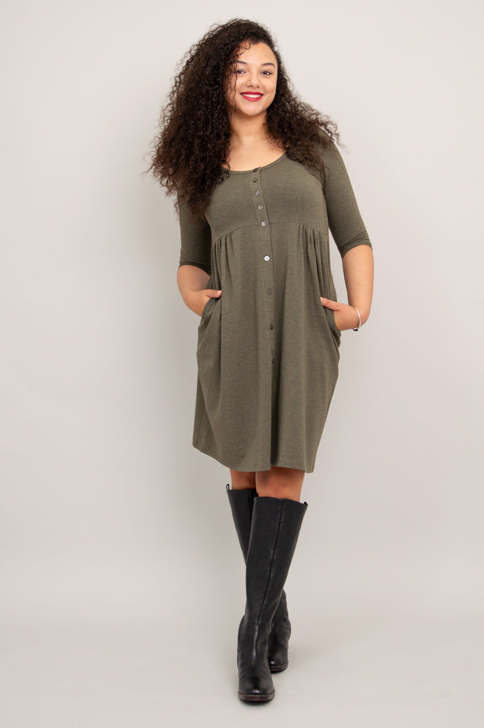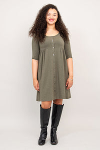 Nelly 3/4 Sleeve Dress, Yarn Dye Khaki, Bamboo