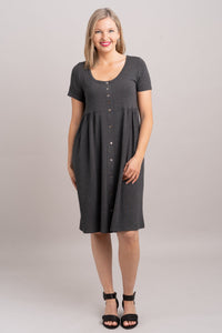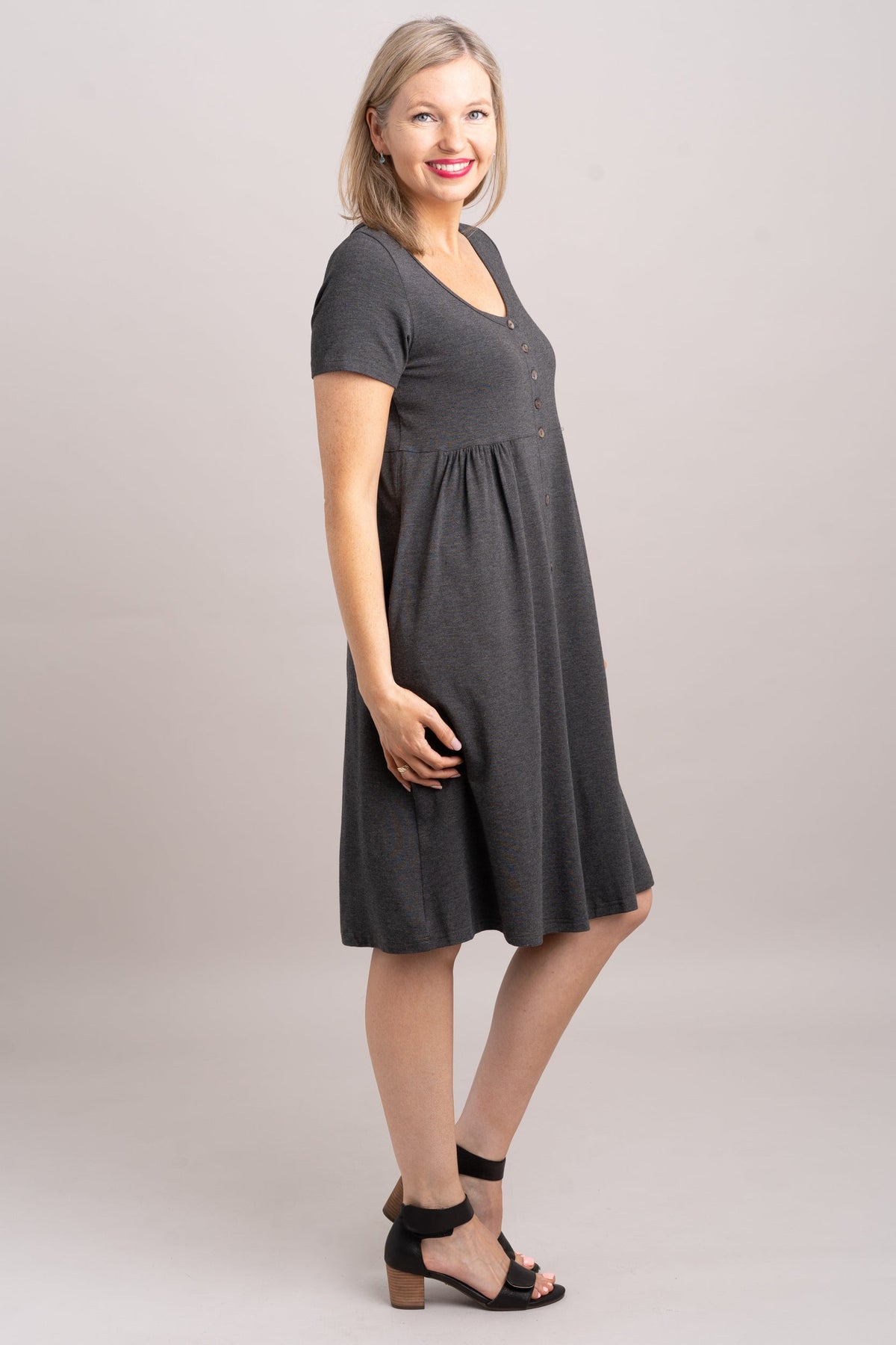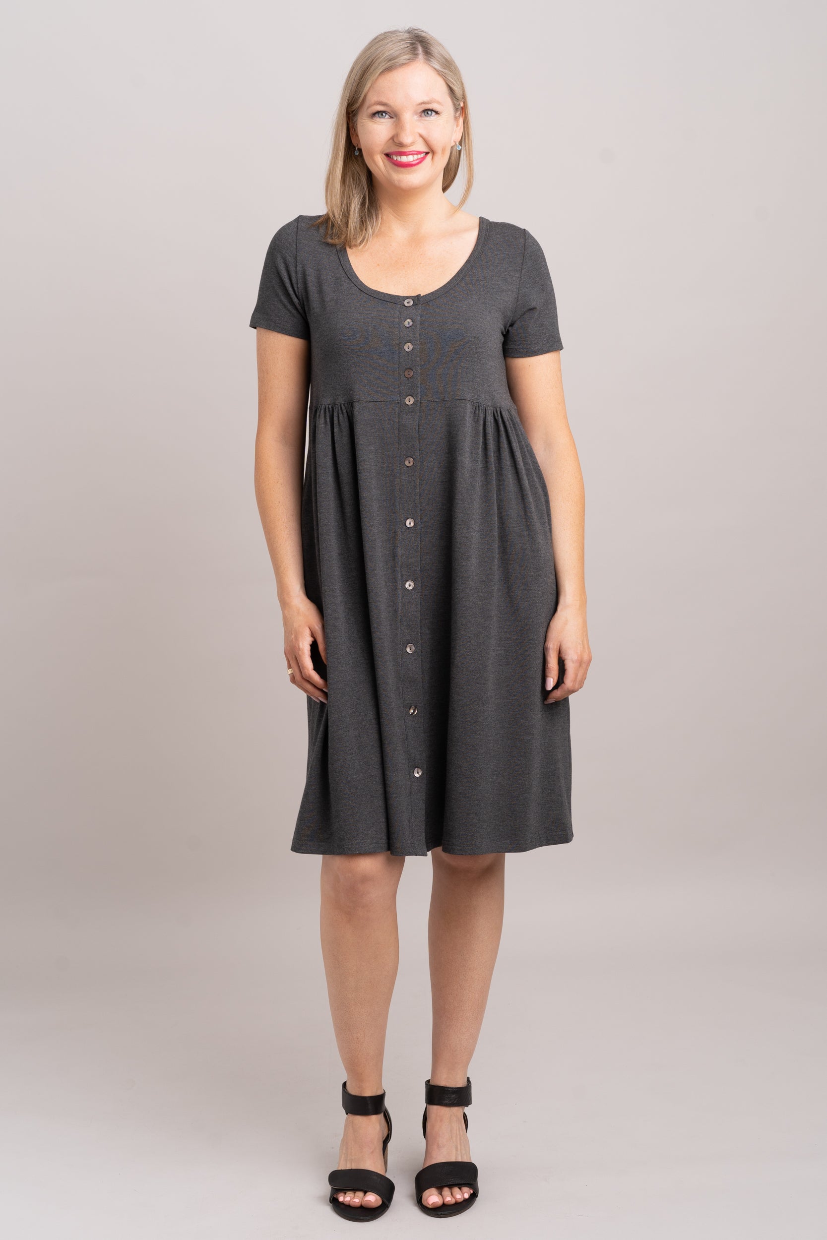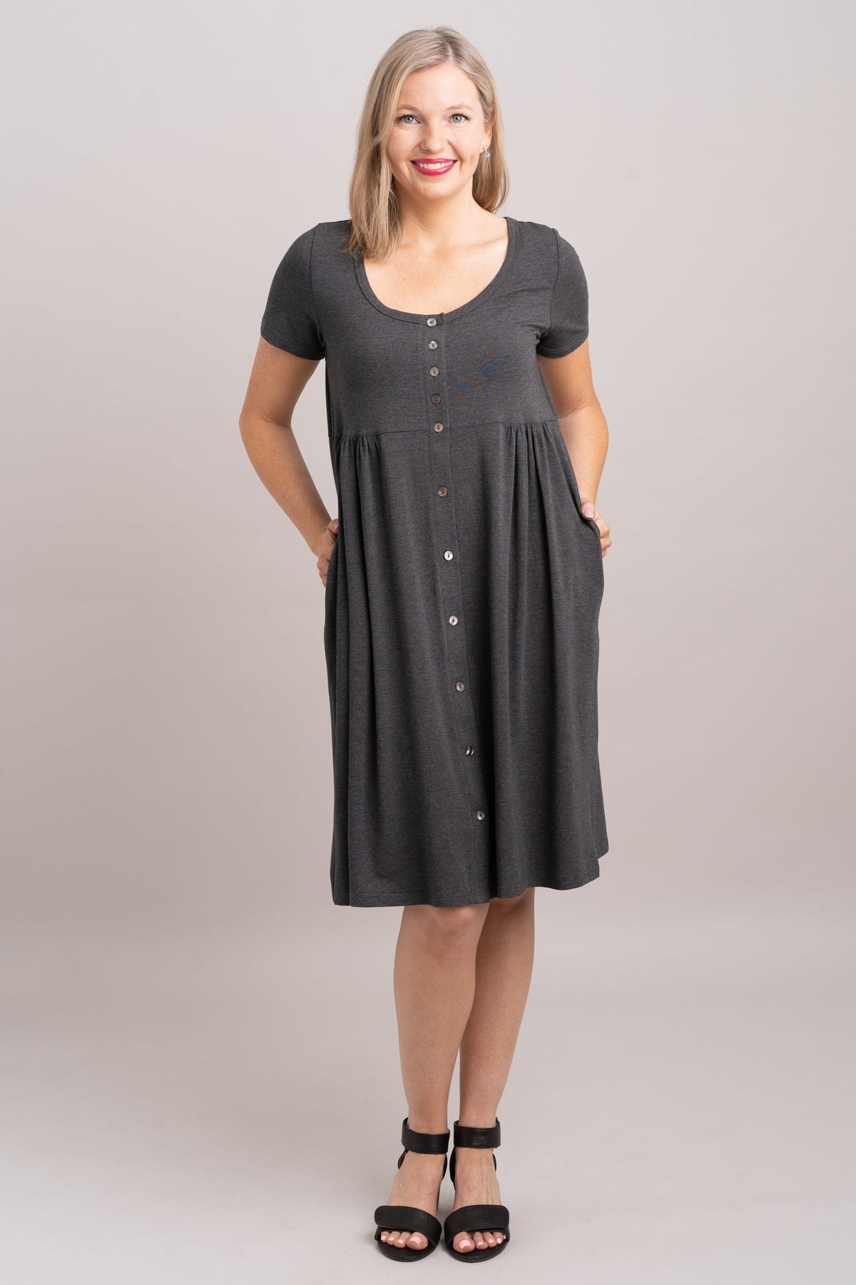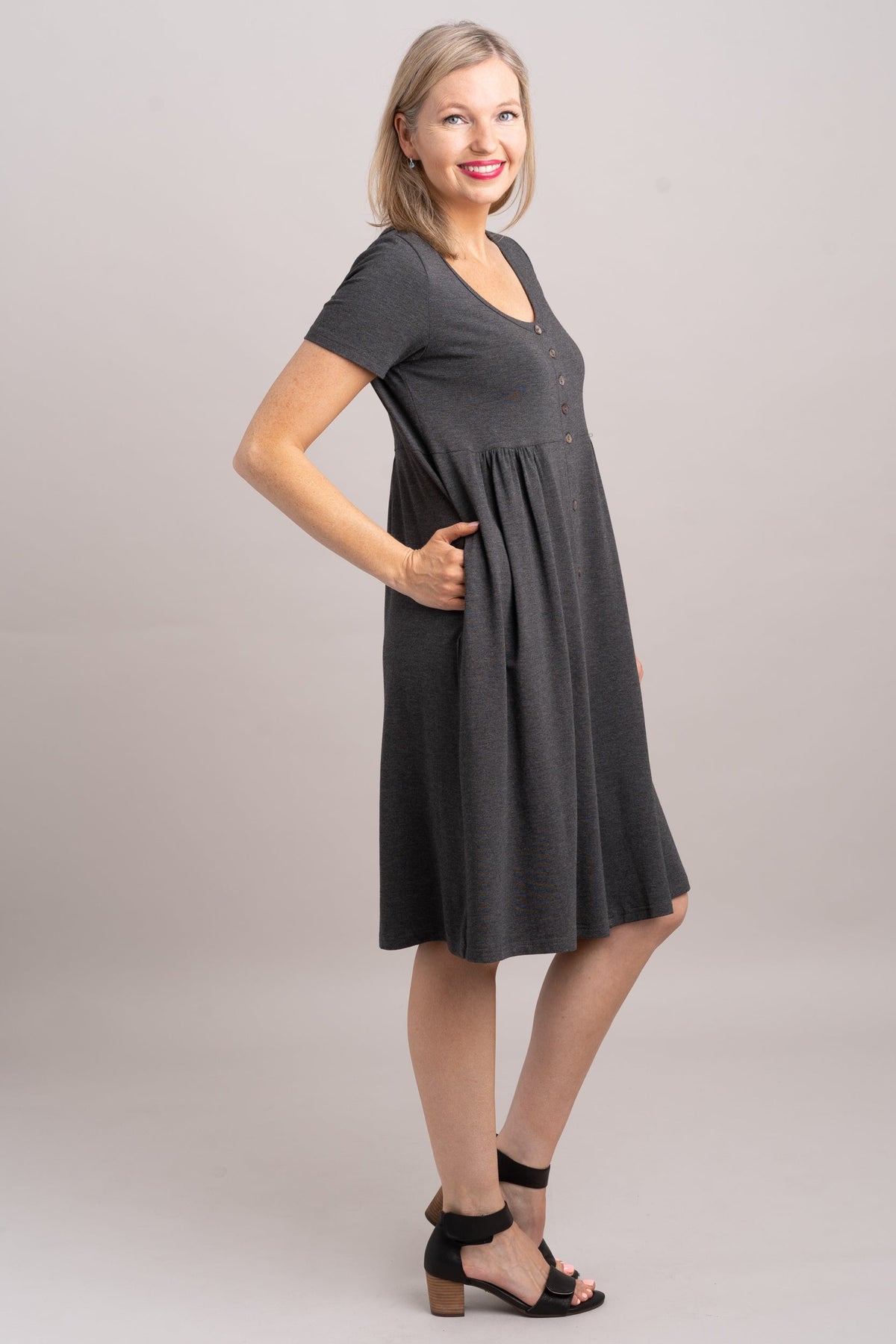 Nelly Short Sleeve Dress, Graphite, Bamboo - Final Sale