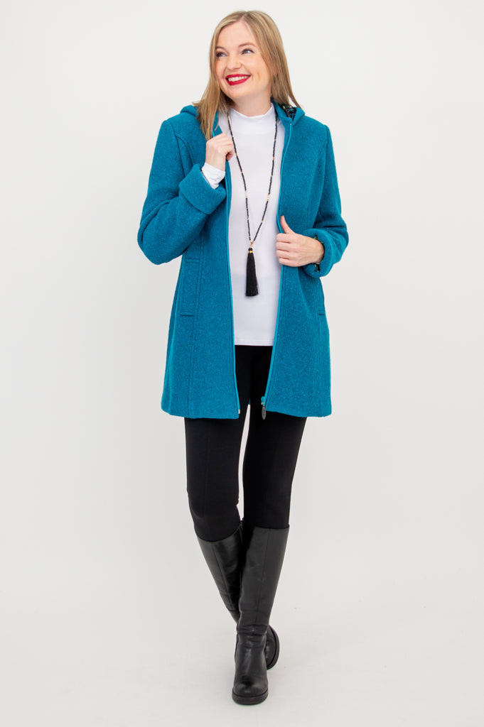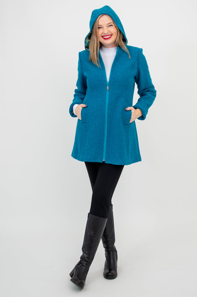 The Pender Coat is tailored to fit the body while being incredibly flattering with princess seams. A generous hood contrasts with the gently fitted bodice with a modern zipper closure.