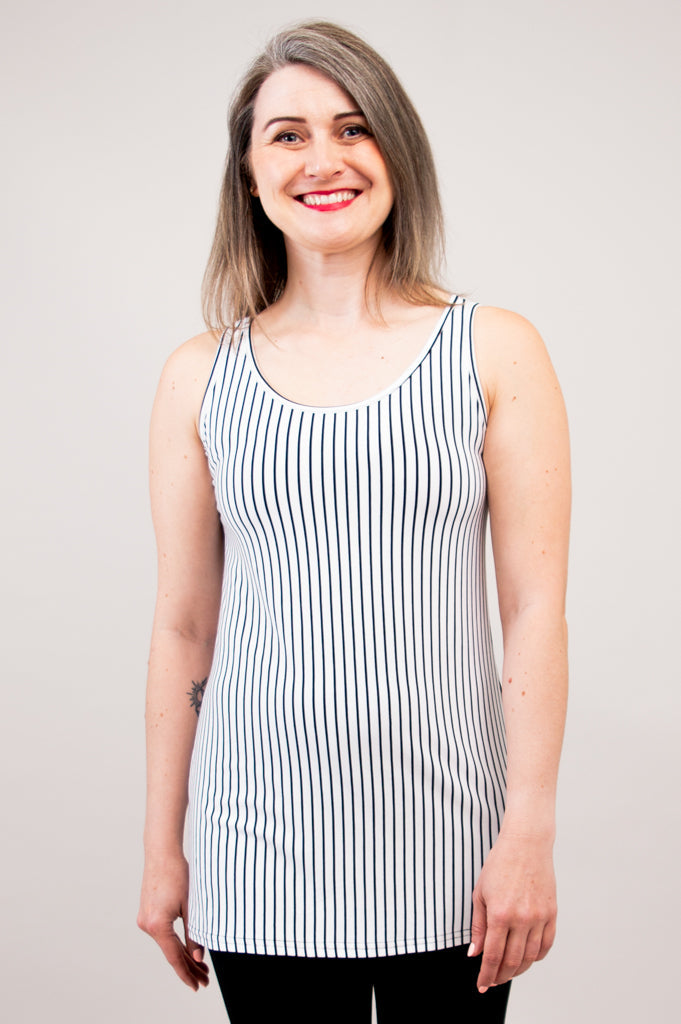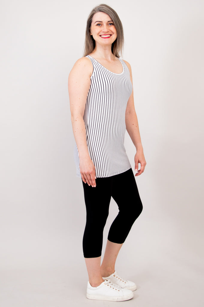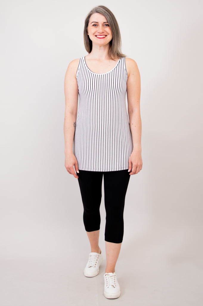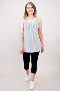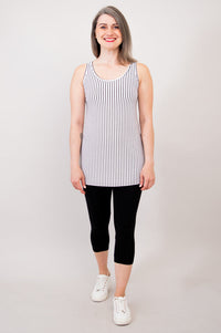 Relaxed Tank, White/Black Small Stripe, Bamboo- Final Sale