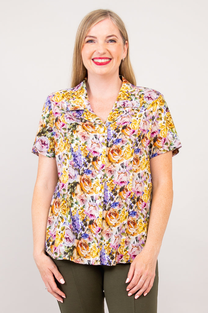 Soft, breathable Linen/Bamboo fabric in a tailored shirt style. The Samantha is great paired with capri pants or layered under a cardigan on cooler days. You can even wear it unbuttoned, for a cool shirt-jacket look.
